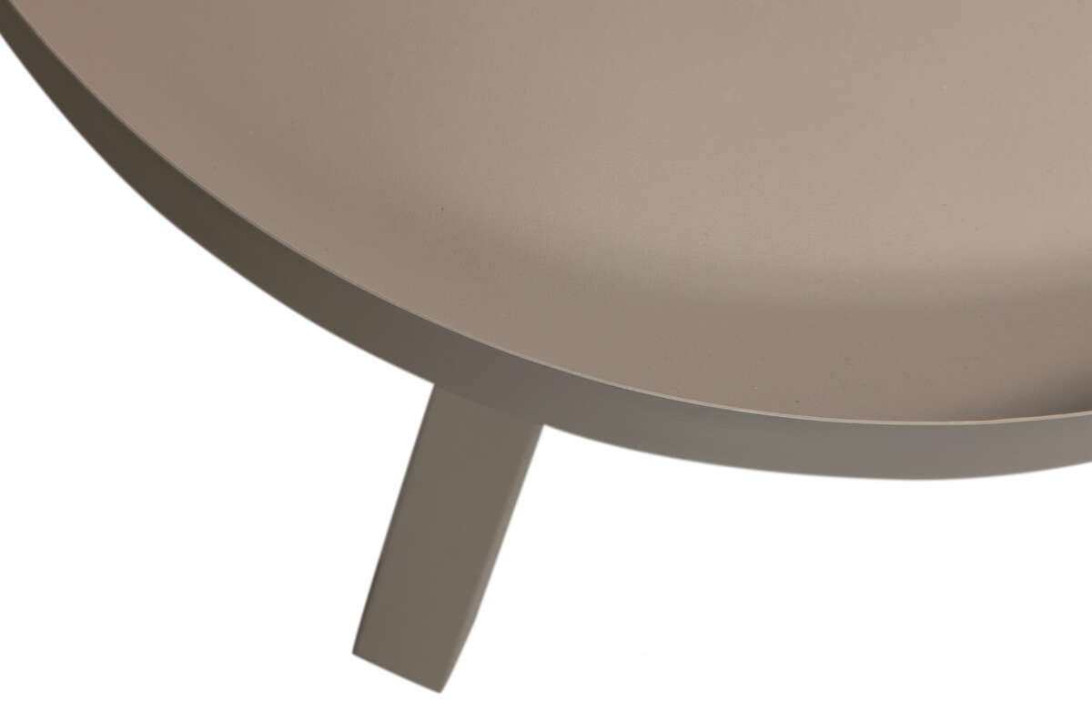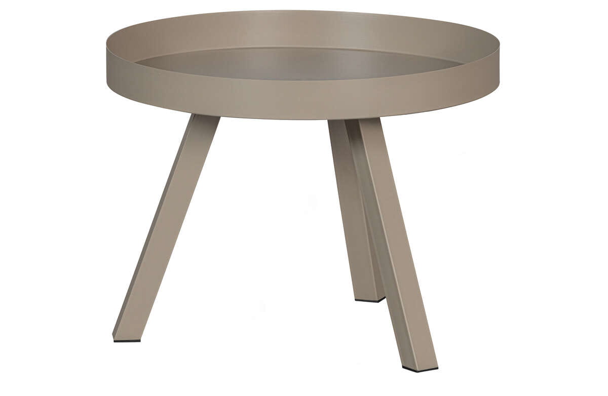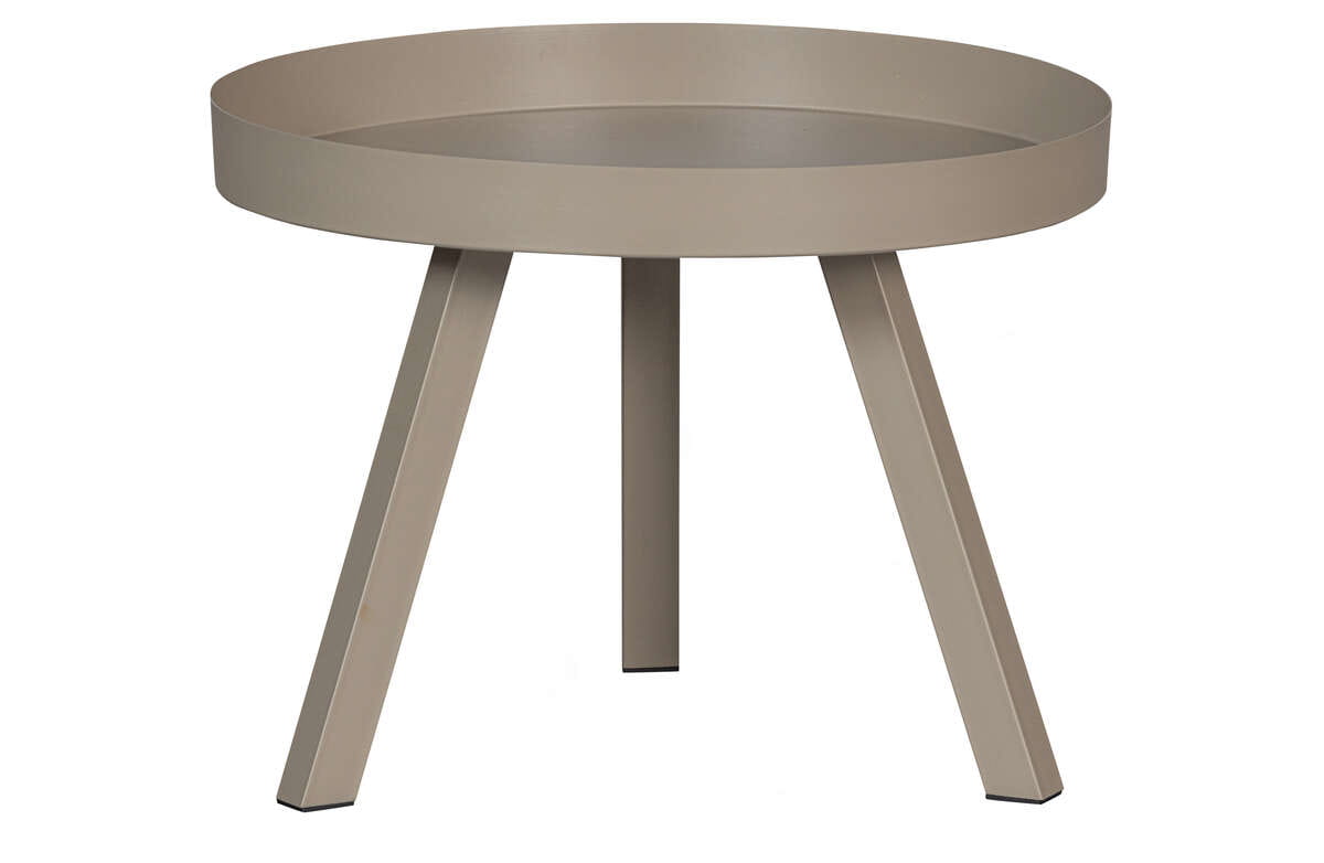 Stolik Sunny wykonany został z metalu pomalowanego proszkowo na beżowy kolor. Ten rodzaj pokrycia zapewnia powierzchni trwałość, jednolitą fakturę i odporność na drobne zarysowania czy uszkodzenia, ale też głębię barwy. Odpowiednio pielęgnowany, będzie służył latami, nie tracąc nic ze swojego atrakcyjnego wyglądu. Stolik posiada praktyczny podwyższony rant (5 cm), który zapewnia, że zawartość wywróconej szklanki pozostanie bezpiecznie na powierzchni. Trzy solidne nogi w formie sześcianów rozstawione są pod kątem, dzięki czemu stolik zachowuje świetną stabilizację.