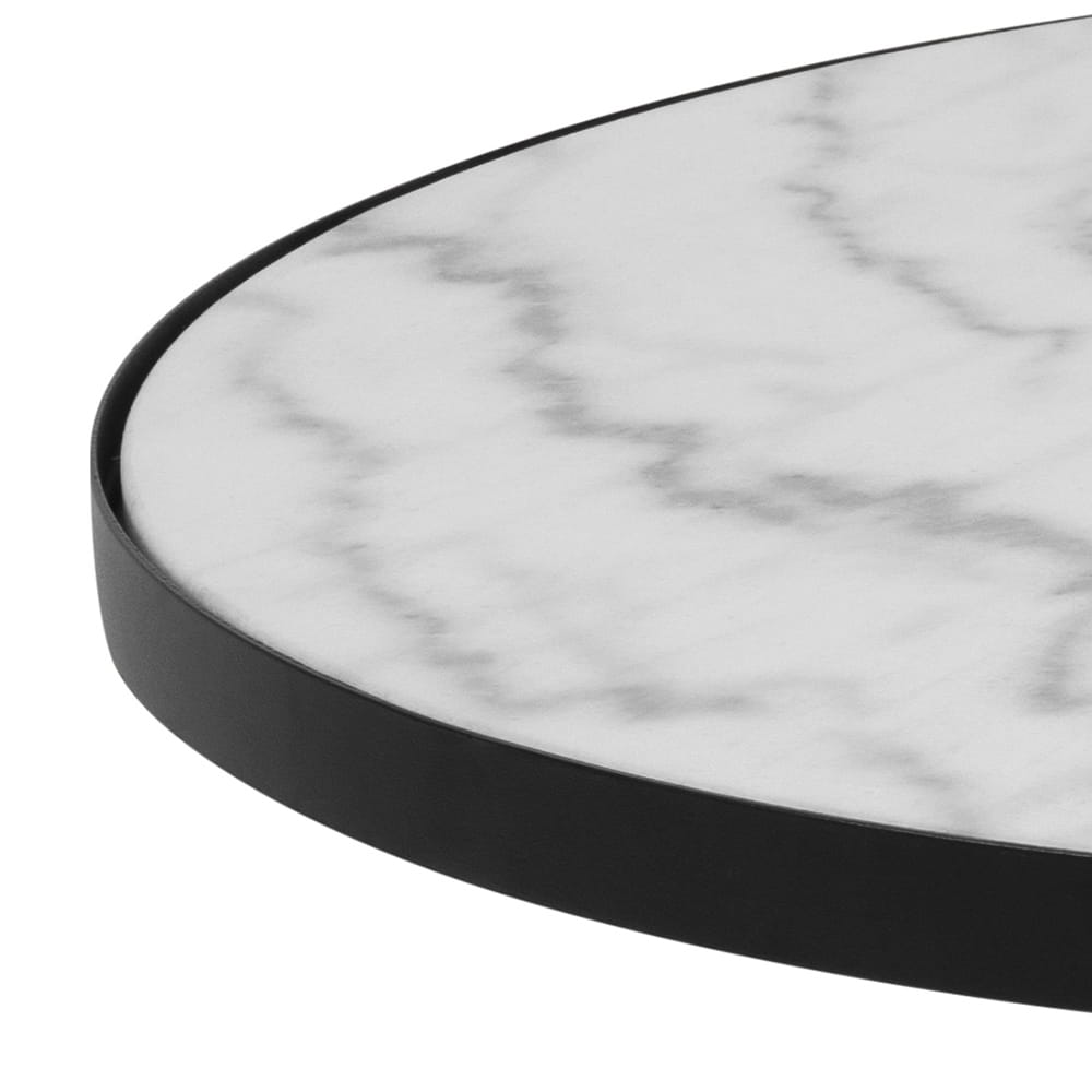 Szlachetny marmur w połączeniu z czarnym kolorem uzupełniają się wzajemnie i tworzą niezwykłą kompozycję. Idealny dla zwolenników nietuzinkowych mebli. Stolik będzie idealnym dopełnieniem modnych i eleganckich przestrzeni. Sprawdzi się zarówno w ekstrawaganckim holu hotelu czy eleganckiej restauracji. Stworzy również świetne trio w połączeniu z mniejszym oraz większym stolikiem z tej samej serii.