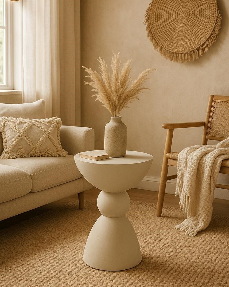 To idealny stolik boczny lub pomocniczy – lekki wizualnie, a jednocześnie solidny i funkcjonalny. Sprawdzi się w salonie obok sofy, w sypialni jako nowoczesna alternatywa dla stolika nocnego lub jako dekoracyjny akcent w holu.