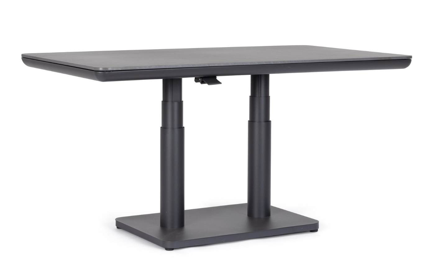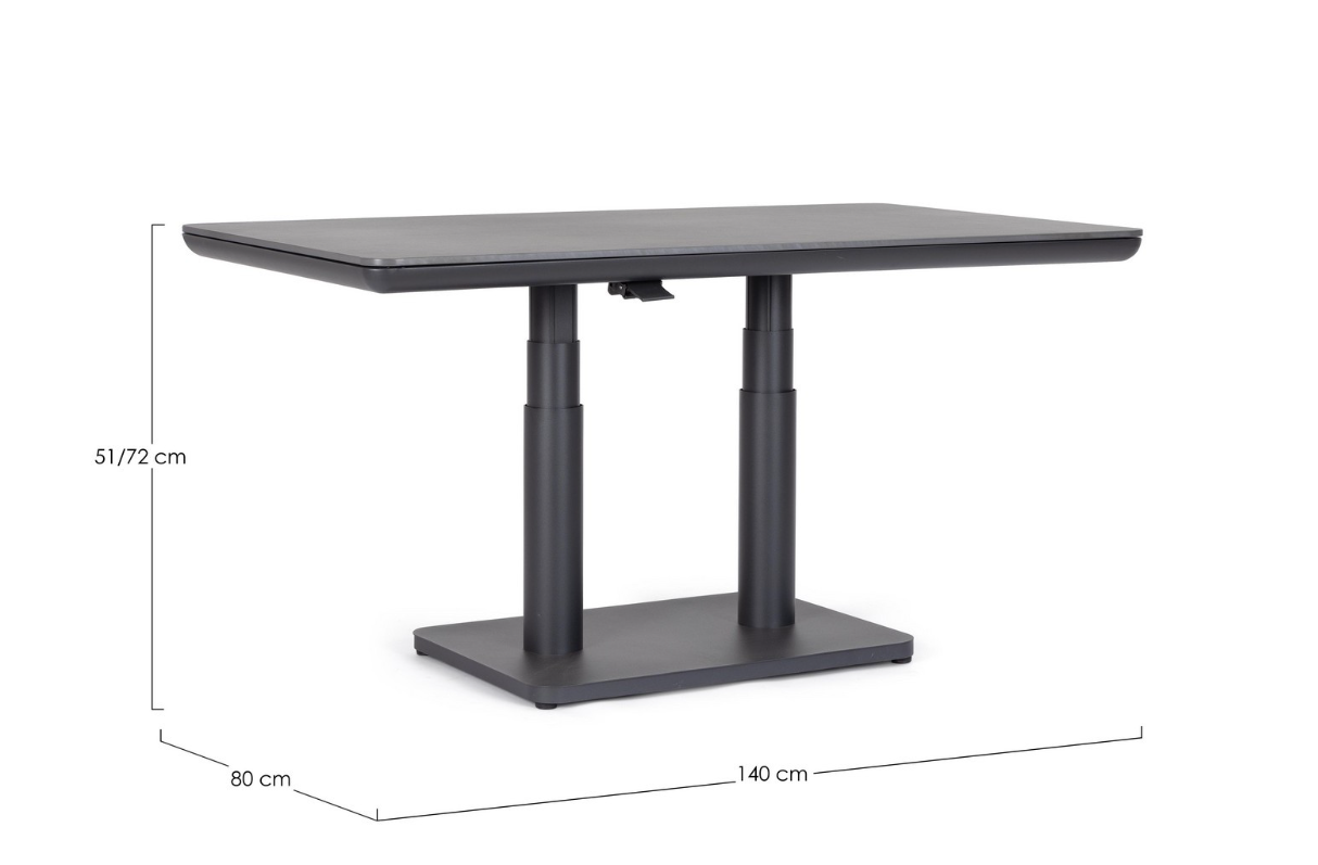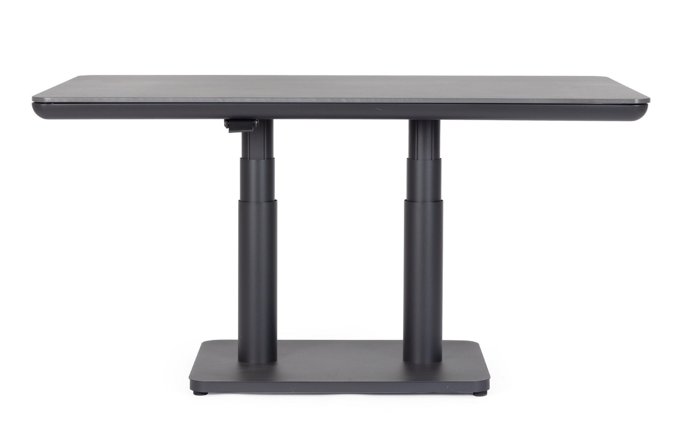 Największym atutem modelu Miguel jest innowacyjny system regulacji wysokości (od 51 do 72 cm), obsługiwany za pomocą wygodnej, dyskretnej dźwigni umieszczonej tuż pod blatem. Dzięki temu stół może w kilka sekund zmienić swoją funkcję – od niskiego stolika kawowego, idealnego do popołudniowego relaksu, po wyższy stół obiadowy, przy którym wygodnie ugościsz rodzinę i przyjaciół. Konstrukcja oparta na dwóch masywnych filarach i stabilnej, płaskiej podstawie zapewnia bezpieczeństwo użytkowania na każdej wysokości.