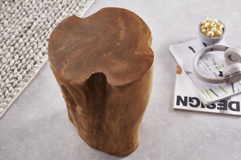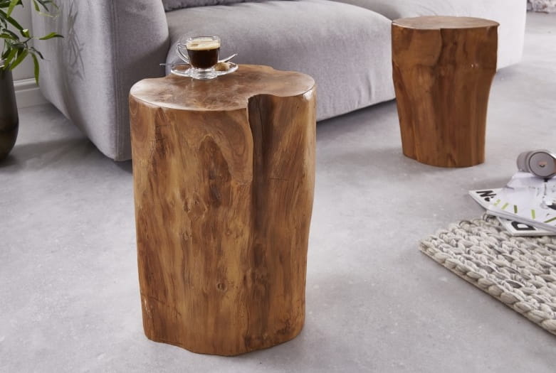 Ten stolik pokochają od pierwszego wejrzenia wszyscy miłośnicy naturalnych dodatków. Do jego wykonania wykorzystuje się serce i korzeń drzewa teakowego, więc każdy egzemplarz to absolutny unikat. Ręcznie obrabiane drewno wygląda pięknie i wprowadza do wnętrza ciepły, przytulny akcent. Może służyć jako stolik kawowy bądź czytelniczy ale też kwietnik czy podstawa pod inne bibeloty. Sam w sobie będzie też cudowną dekoracją. Idealny do wnętrz rustykalnych i skandynawskich, ale można go wykorzystać również w minimalistycznych i loftowych salonach - jako wyrazisty kontrapunkt dla surowego wystroju.