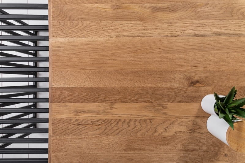 Ten stolik ujmuje bardzo ciekawą formą. Większość blatu stanowi deska z litego drewna dębowego, zabezpieczonego specjalnym olejem. Druga jego część to żebrowany element metalowy, płynnie przechodzący w podstawę. Może on służyć jako podstawa pod wazon, ale równie dobrze da się go wykorzystać jako wieszak na gazety. Jego industrialny charakter predestynuje go do wykorzystania we wnętrzach utrzymanych w takiej stylistyce, ale będzie pasował również do salonów inspirowanych estetyką skandynawską, rustykalną czy boho.