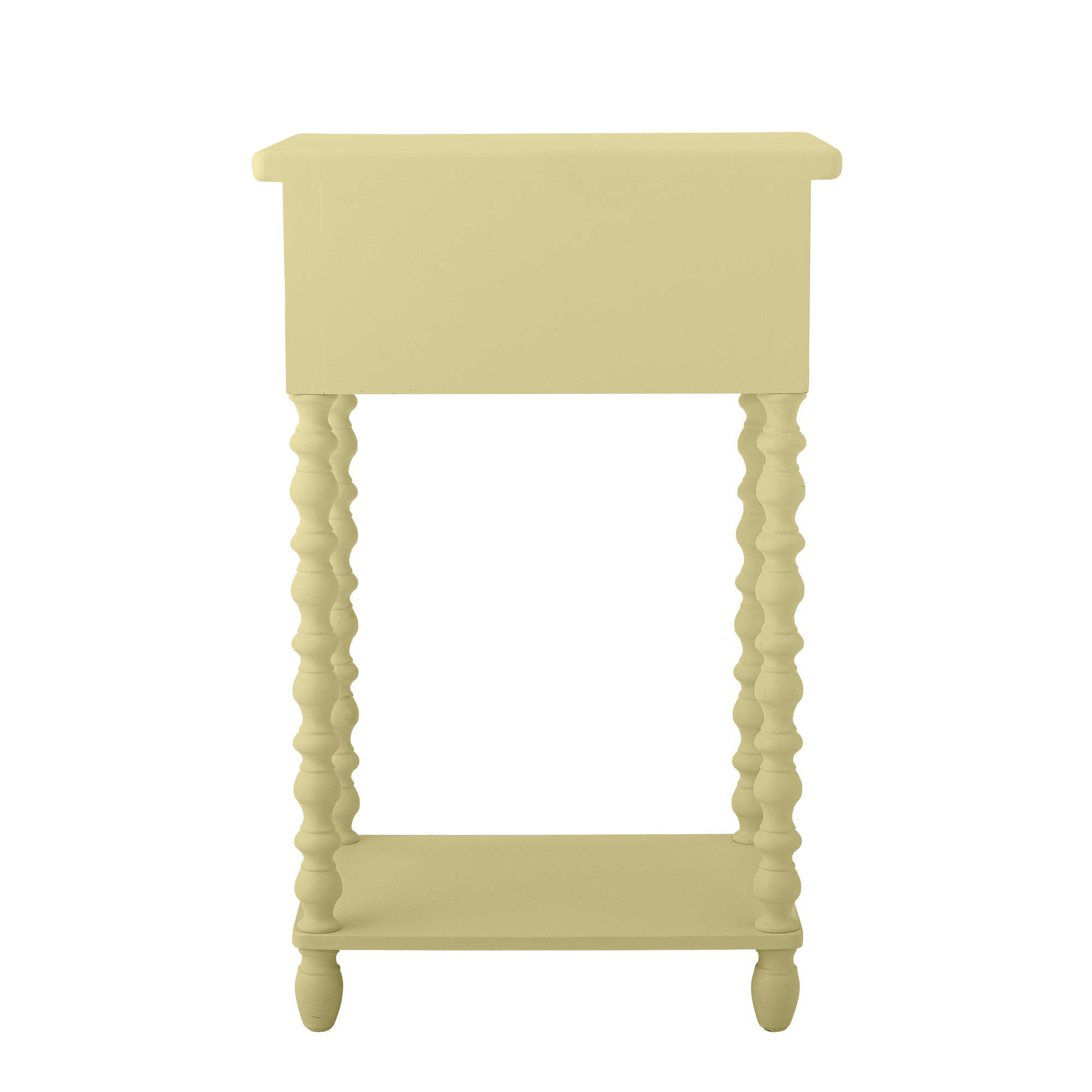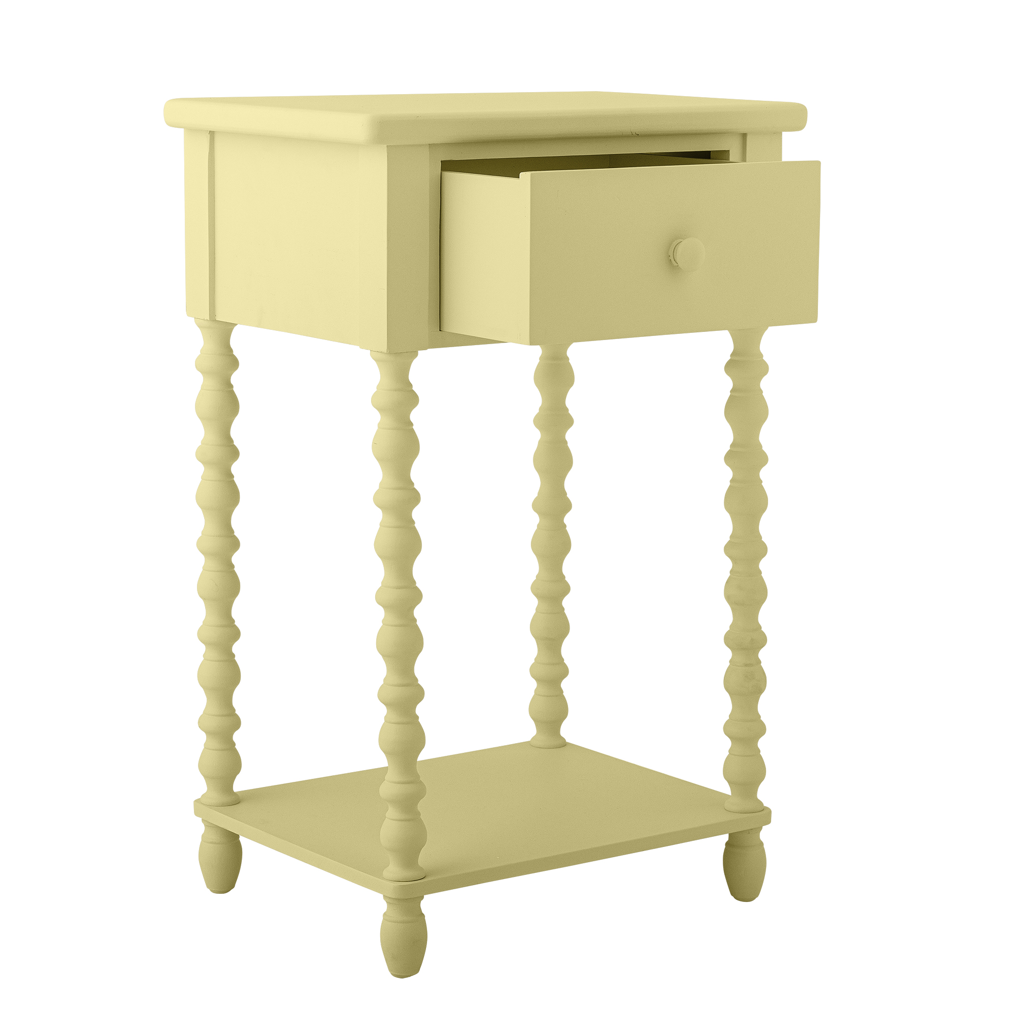 Stolik nocny Salino marki Bloomingville to uroczy i delikatny mebel, który wnosi radość oraz lekkość do każdego pomieszczenia. Wykonany z drewna jodłowego, przyciąga wzrok subtelnym, pastelowym odcieniem żółci oraz misternie toczonymi nogami, które nadają mu elegancki, a zarazem nieco nostalgiczny charakter. Gładkie wykończenie i dopracowane detale sprawiają, że stolik idealnie wpisuje się w estetykę "Vintage in Bloom".