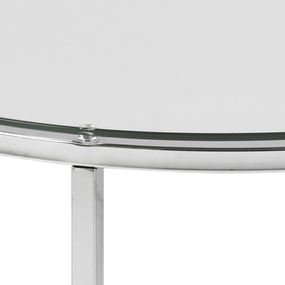 Stolik okrągły Cross wykonany został z chromowanego metalu oraz transparentnego szkła hartowanego, stanowiącego taflę blatu. Stolik doskonale odnajdzie się w industrialnych, loftowych oraz nowoczesnych wnętrzach wnosząc elegancję i styl.