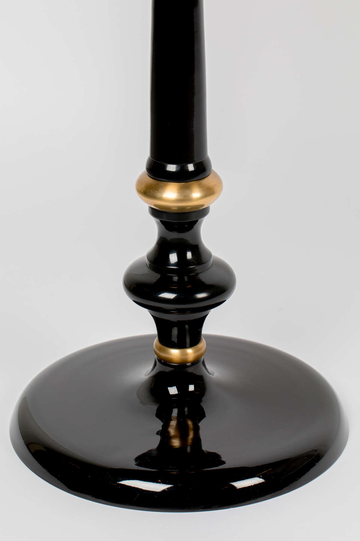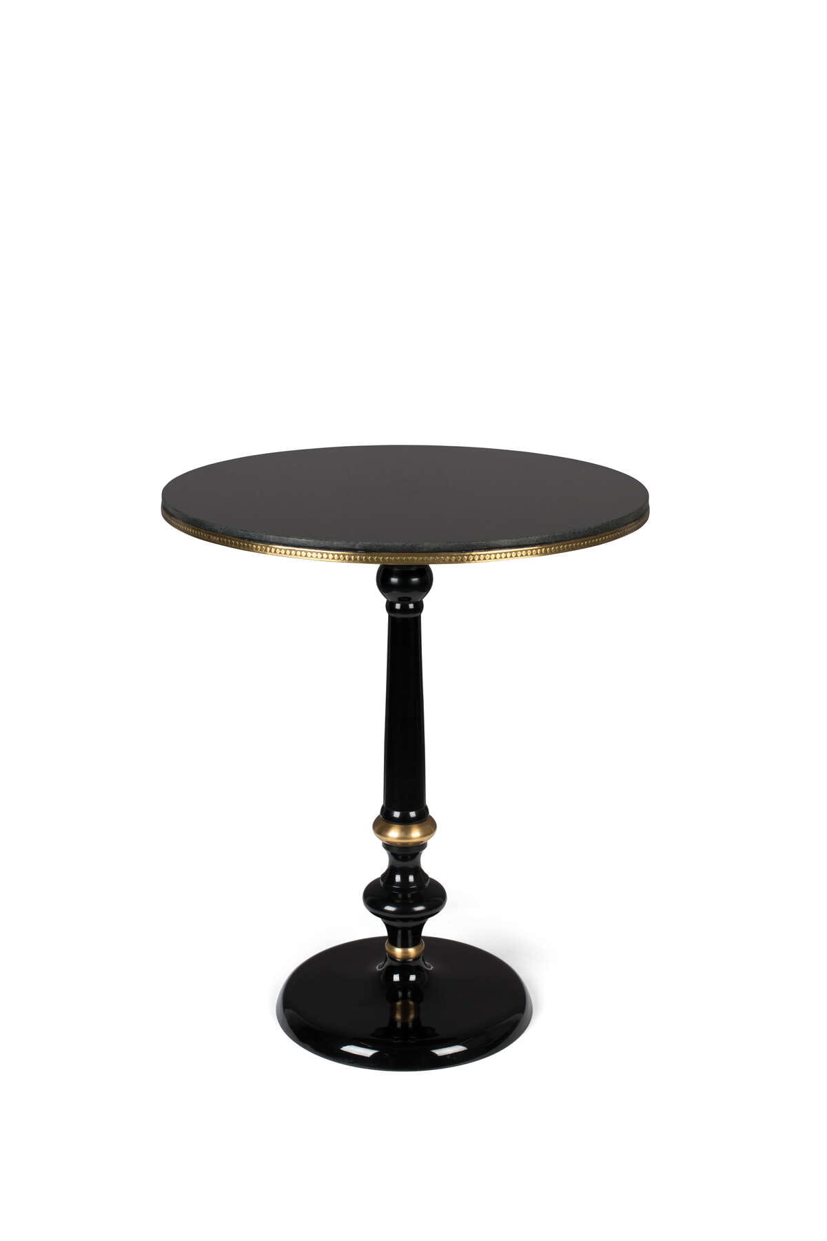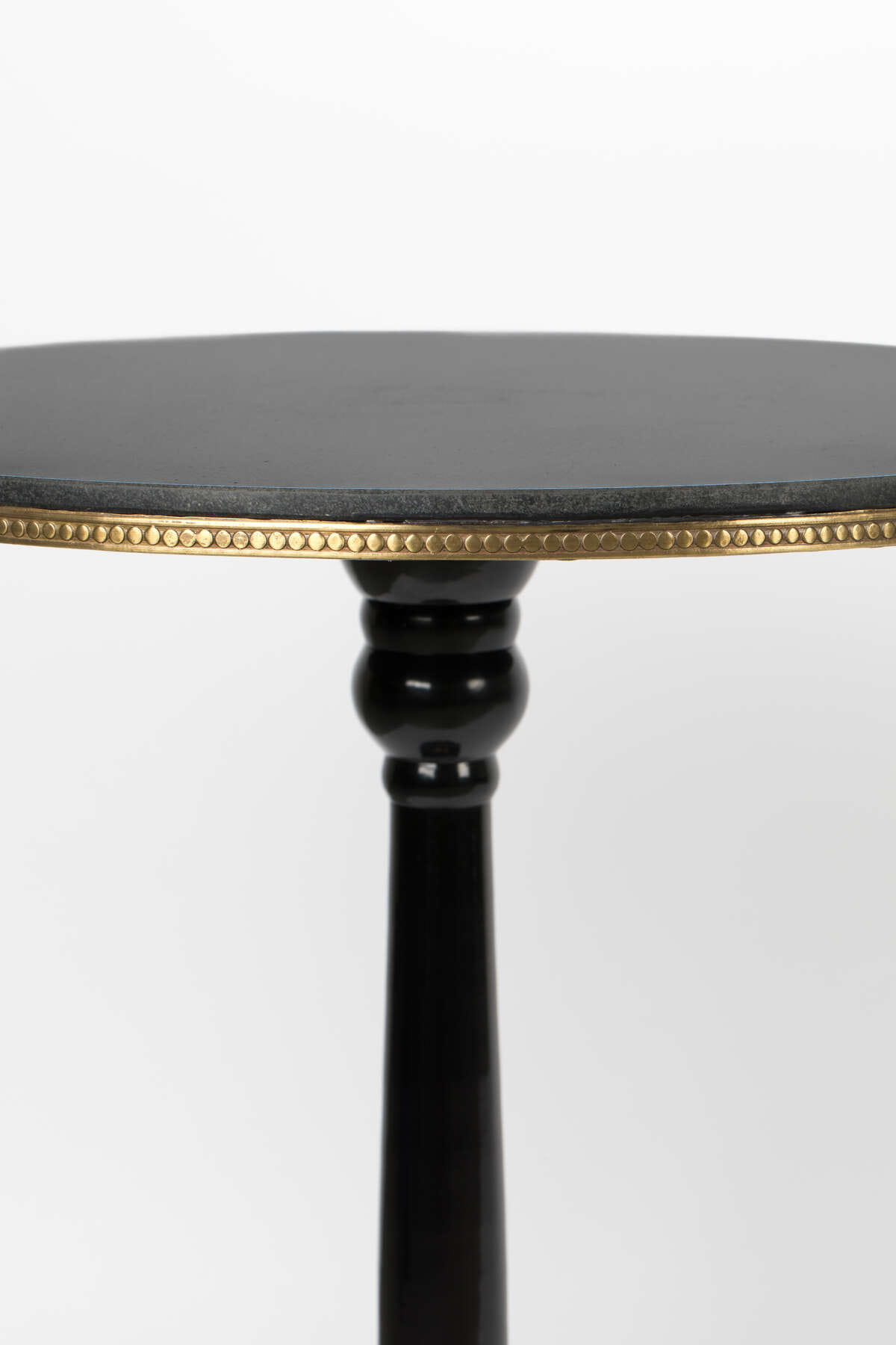 Pinezkowe obramowanie blatu, jak również złote zdobienia na nodze, podkreślają wystawny wygląd tworząc luksusowy element wystroju.