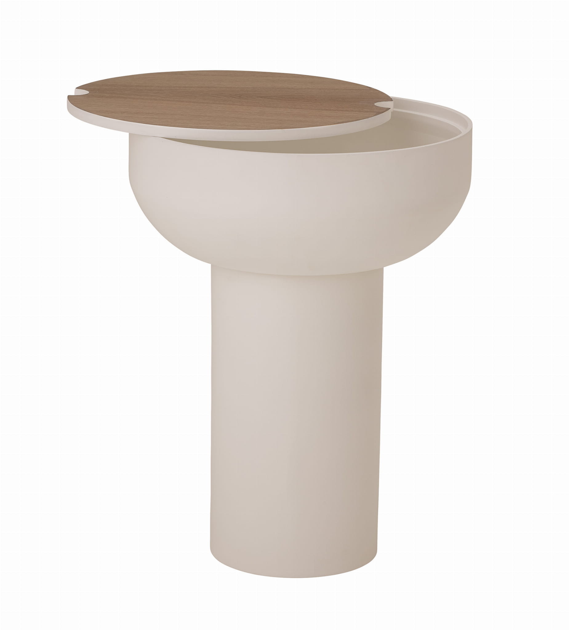Owalna podstawa wykonana została z płyty MDF, która wyróżnia się dużą trwałością i solidnością. Okrągły blat stolika stanowi fornir dębowy o naturalnym wykończeniu, który podkreśla wyrafinowany i stylowy design, a także jest wysoce wytrzymały (jego maksymalne obciążenie wynosi aż 10 kg). Dodatkowym atutem jest schowek znajdujący się pod blatem, który stanowi idealne miejsce na przechowywanie rzeczy do 3 kg. Stolik Abbie to dokładnie przemyślany mebel, który wyposaży wnętrze w dodatkowe miejsce użytkowe oraz mały składzik na drobiazgi, a takż będzie stylowym i designerskim dodatkiem.