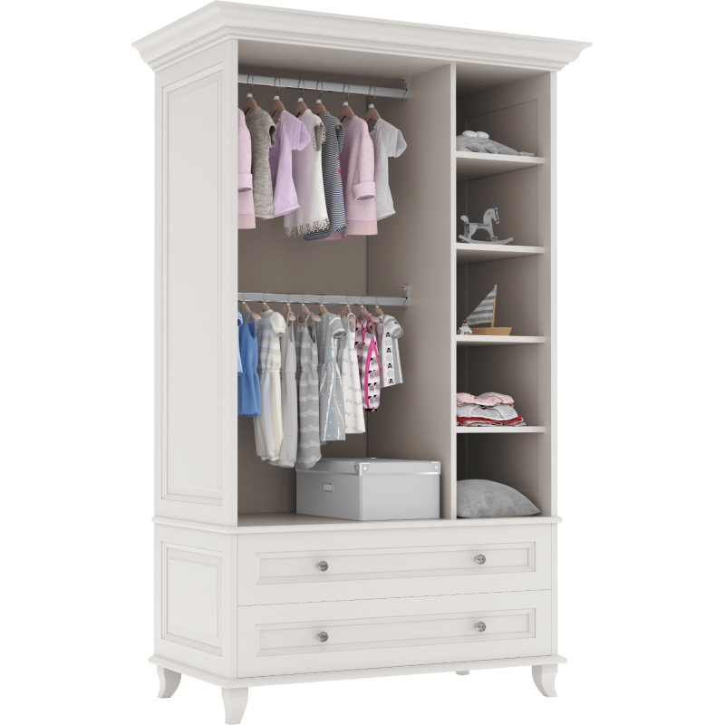 Szafa Charlotte z frezowaniami i 2 dolnymi szufladami w kolorze kości słoniowej