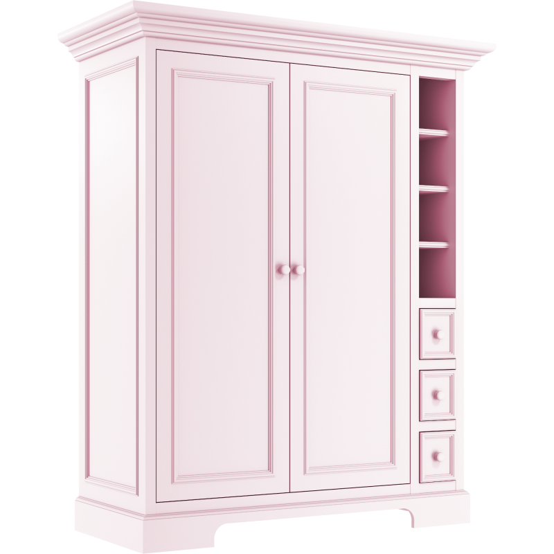Różowa klasyczna szafa dwudrzwiowa Sofi uzupełniona szufladkami