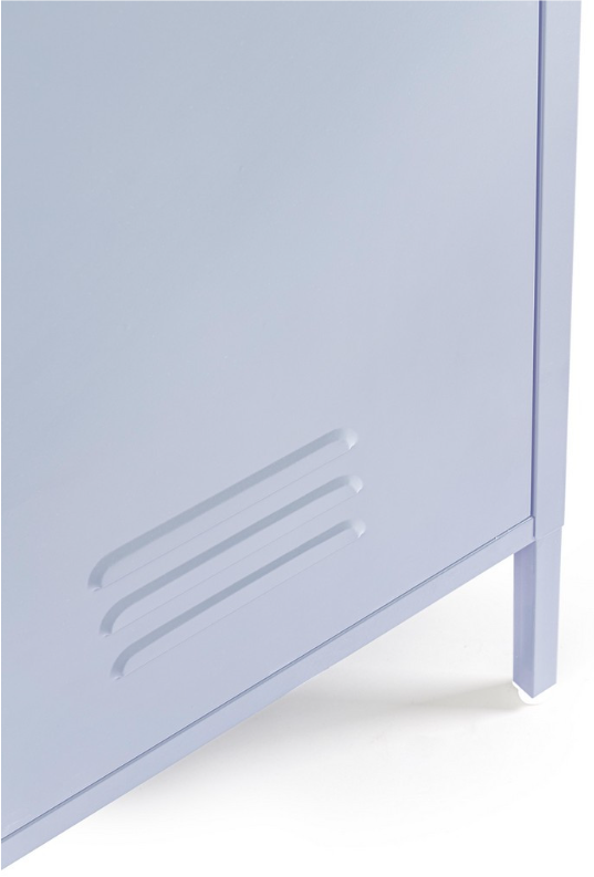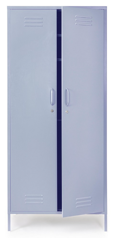 Dwudrzwiowa szafa Cambridge to rozwinięcie kultowego projektu typu locker, oferujące dwukrotnie więcej przestrzeni w równie stylowej formie. Model o szerokości 80 cm został wykończony w subtelnym odcieniu Light Blue, który balansuje między pastelowym błękitem a delikatną lawendą. Ta łagodna kolorystyka sprawia, że industrialna, metalowa bryła traci swoją surowość, stając się idealnym elementem wyposażenia sypialni w stylu scandi, kreatywnego biura czy pokoju młodzieżowego.