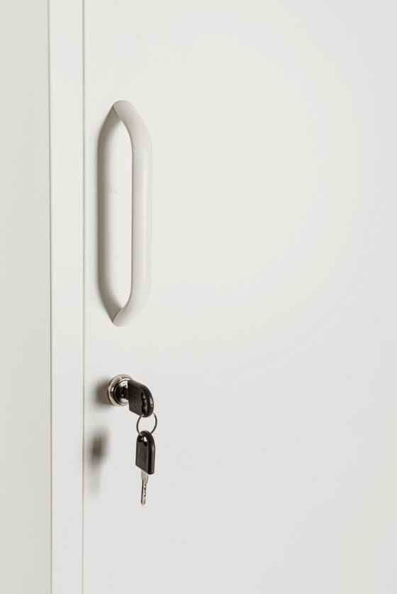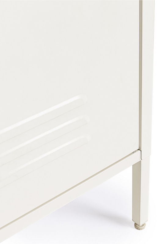 Szafa Cambridge w odcieniu White Cream to dowód na to, że meble industrialne mogą być subtelne i lekkie wizualnie. Ten model, czerpiący inspirację z klasycznych metalowych szafek typu "locker", został wykończony w łagodnym, kremowo-białym kolorze. Dzięki temu surowa, stalowa bryła nabiera ogłady i doskonale wpisuje się nie tylko w przestrzenie loftowe, ale także w jasne aranżacje skandynawskie, boho czy nowoczesne pokoje dziecięce, optycznie ich nie przytłaczając.