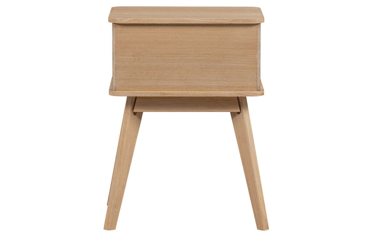 Szafka nocna Marla to stylowy, skandynawski design łączący w sobie naturalne materiały, funkcjonalność i ciepły minimalizm. Wykonana z jasnego drewna sosnowego, prezentuje się spokojnie i harmonijnie, łatwo wpasowując się w każdy styl sypialni.