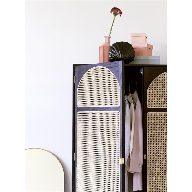 Czy jest tu ktoś, kto jest w stanie oprzeć się urokowi plecionki wiedeńskiej? Szczególnie jeśli jest ona wkomponowana w drzwiczki szafki o wspaniałej, klasycznej formie, czerpiącej najlepsze wzorce ze stylu retro? My na pewno nie jesteśmy i według nas temu meblowi niedaleko do ideału. Jeśli kochasz styl kolonialny i szukasz dodatków utrzymanych w takiej estetyce, to ten model na pewno Ci się spodoba. Korpus, podstawa i fronty zostały wykonane ze szlachetnego egzotycznego drewna sungkai, a całość uzupełniono o stylowe mosiężne detale. Wnętrze kryje jedną dużą komorę do wieszania koszul czy sukienek i kilka półek, na których można ułożyć inne rzeczy. Będzie prawdziwą ozdobą sypialni, garderoby i każdego innego pomieszczenia, w którym się znajdzie.