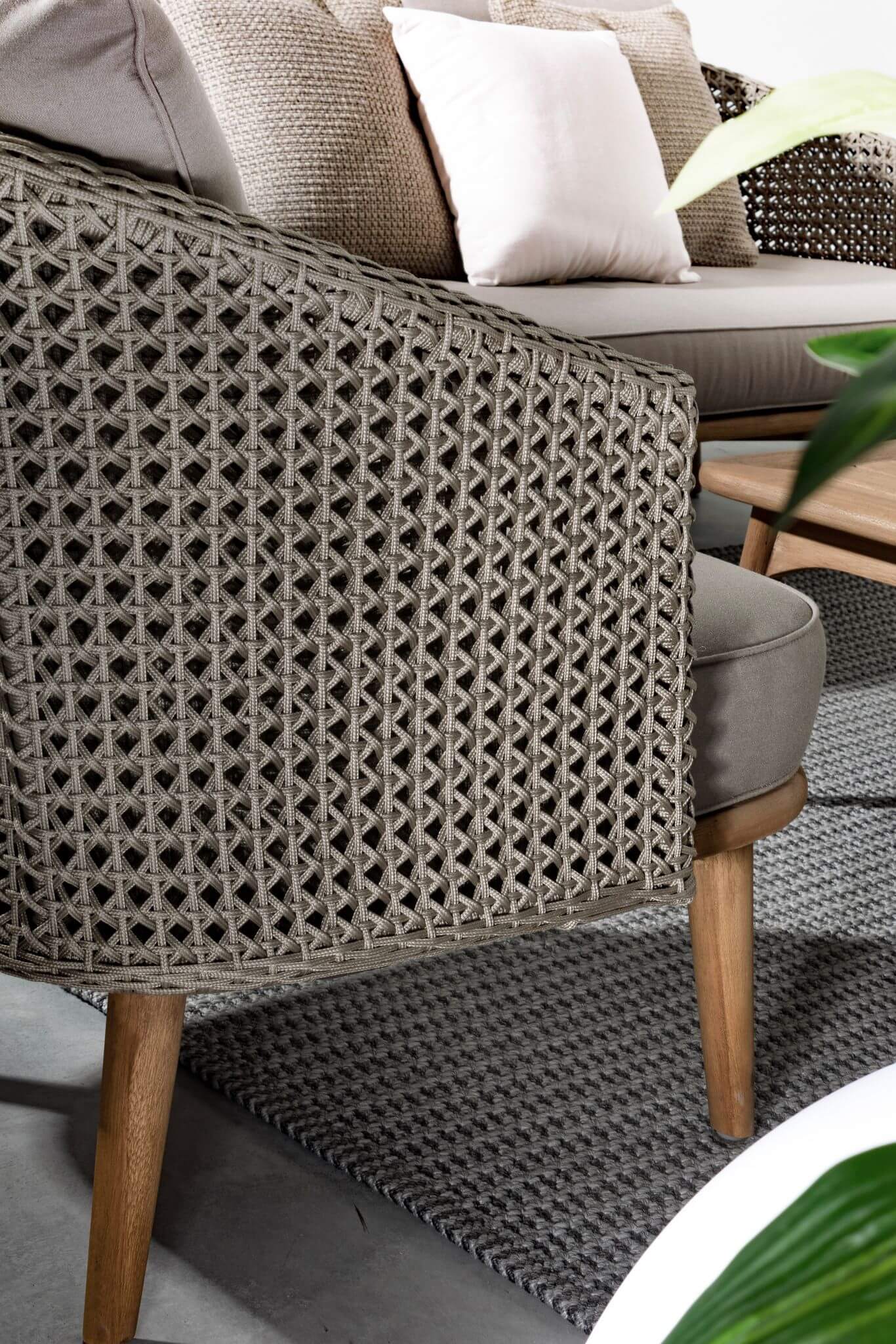 Szary Fotel ogrodowy Nina z drewnianymi nóżkami