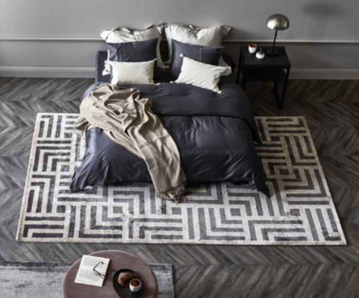 Miękki szary dywan geometryczny – COSMOU AVENUE, duńskiej marki Reza’s.