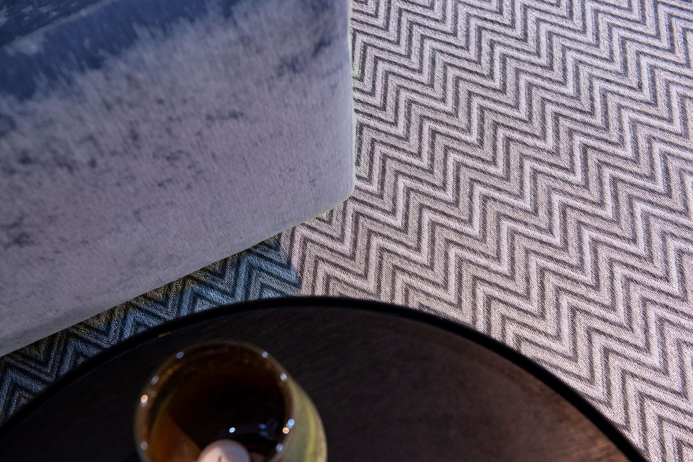 Wyjątkowo staranne dobranie kolorów szarości z lśniącą nitką pięknie komponuje się we wnętrzach salonów.