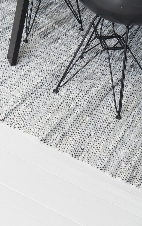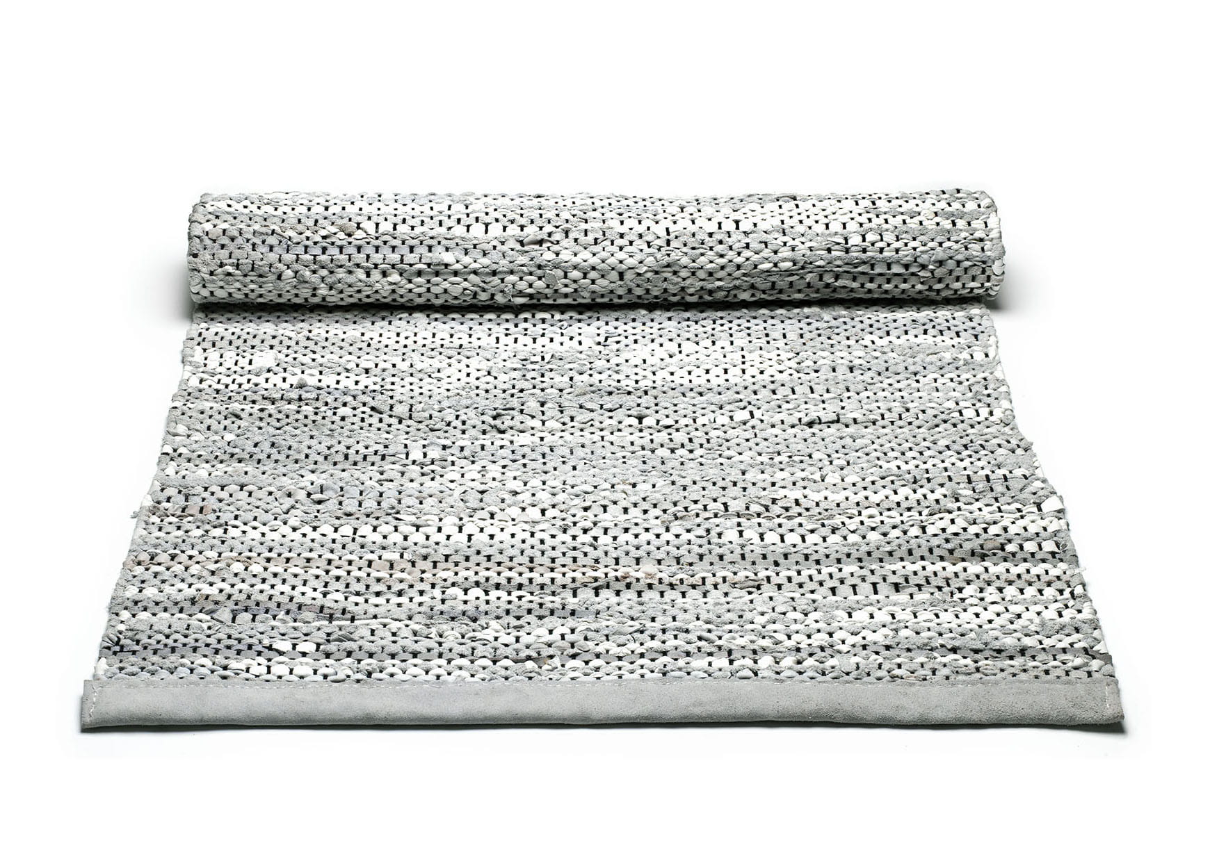 Szary dywan skórzany z recyklingu – LEATHER LIGHT GREY 0024, duńskiej marki Rug Solid.