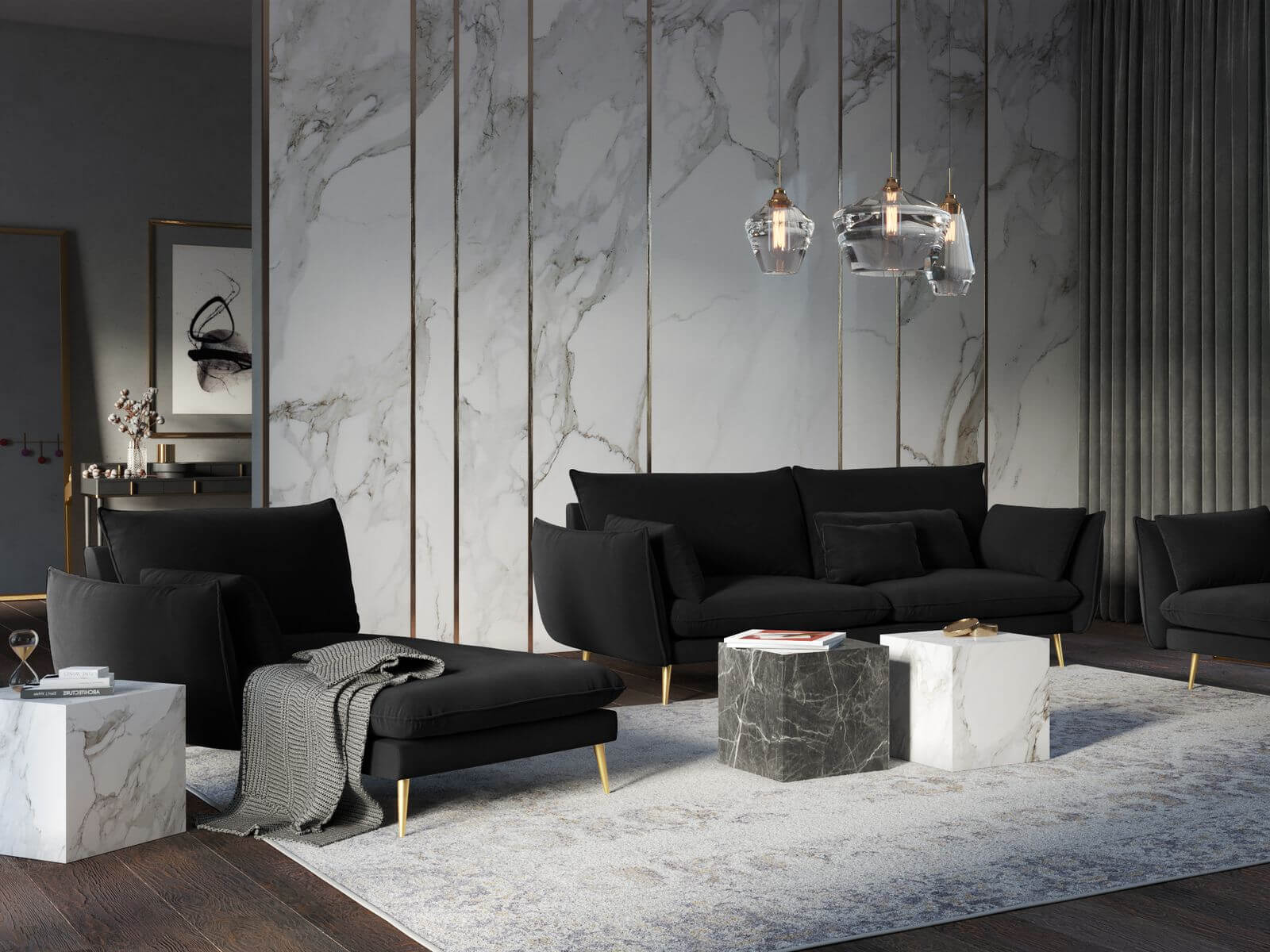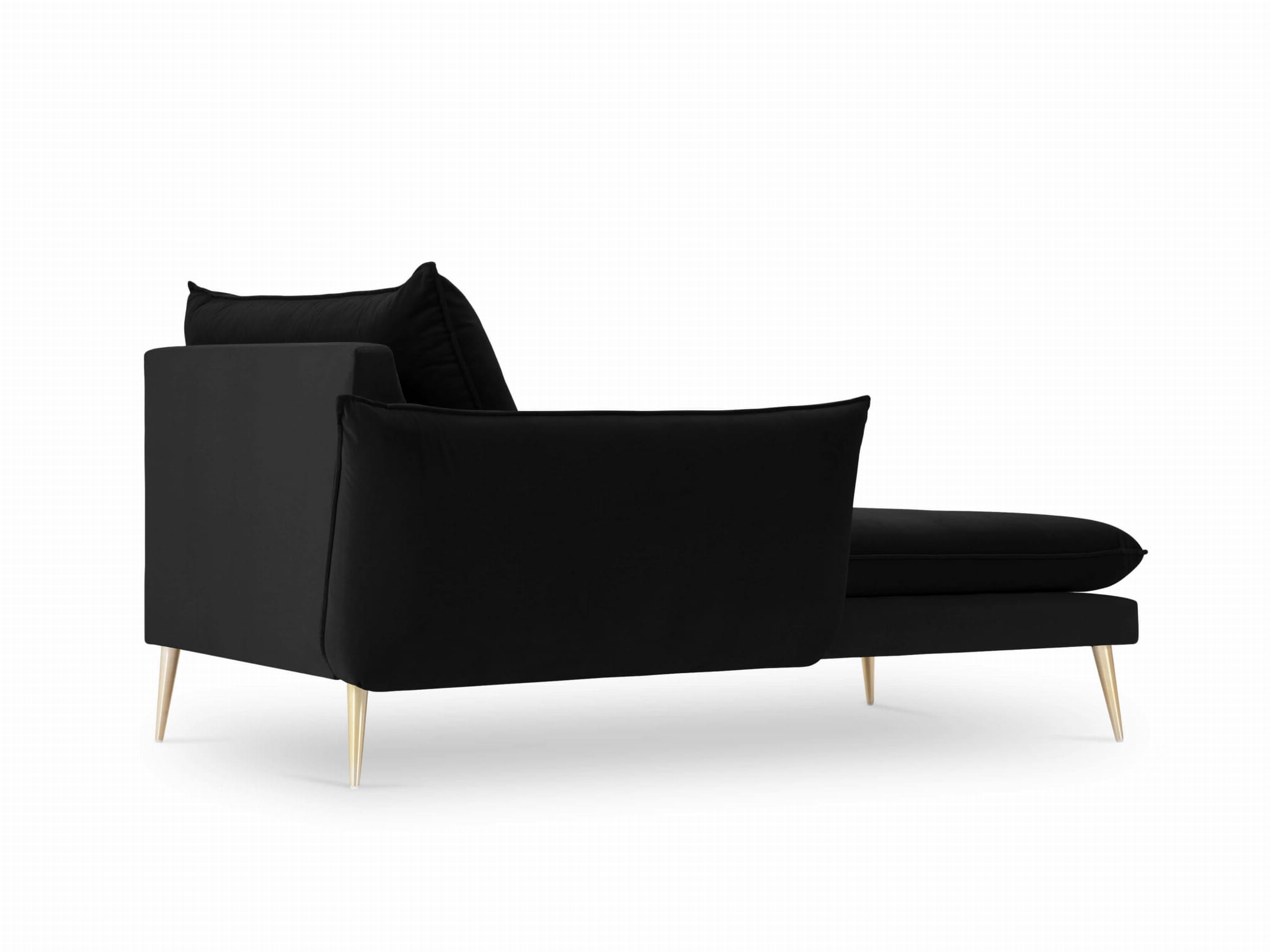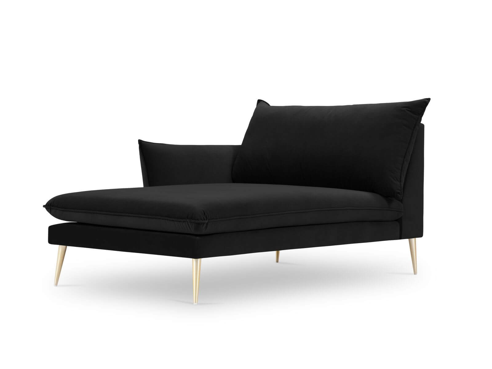 Szezlong Elio czarny aksamit nóżki złote glamour