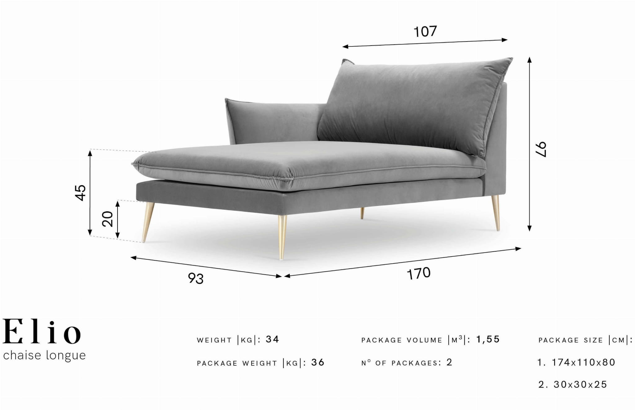 Szezlong Elio to mebel reprezentujący klasę i wysoki komfort wypoczynku. Oprócz cech użytkowych przejawia także walory estetyczne, za sprawą których Twoje wnętrze nabierze przytulnej elegancji.