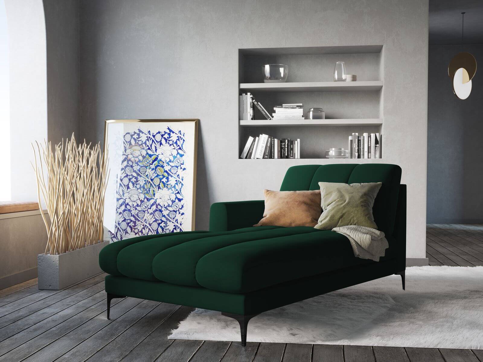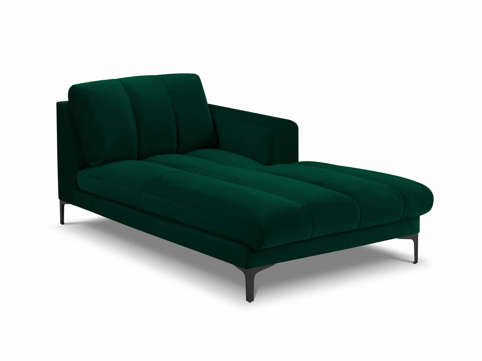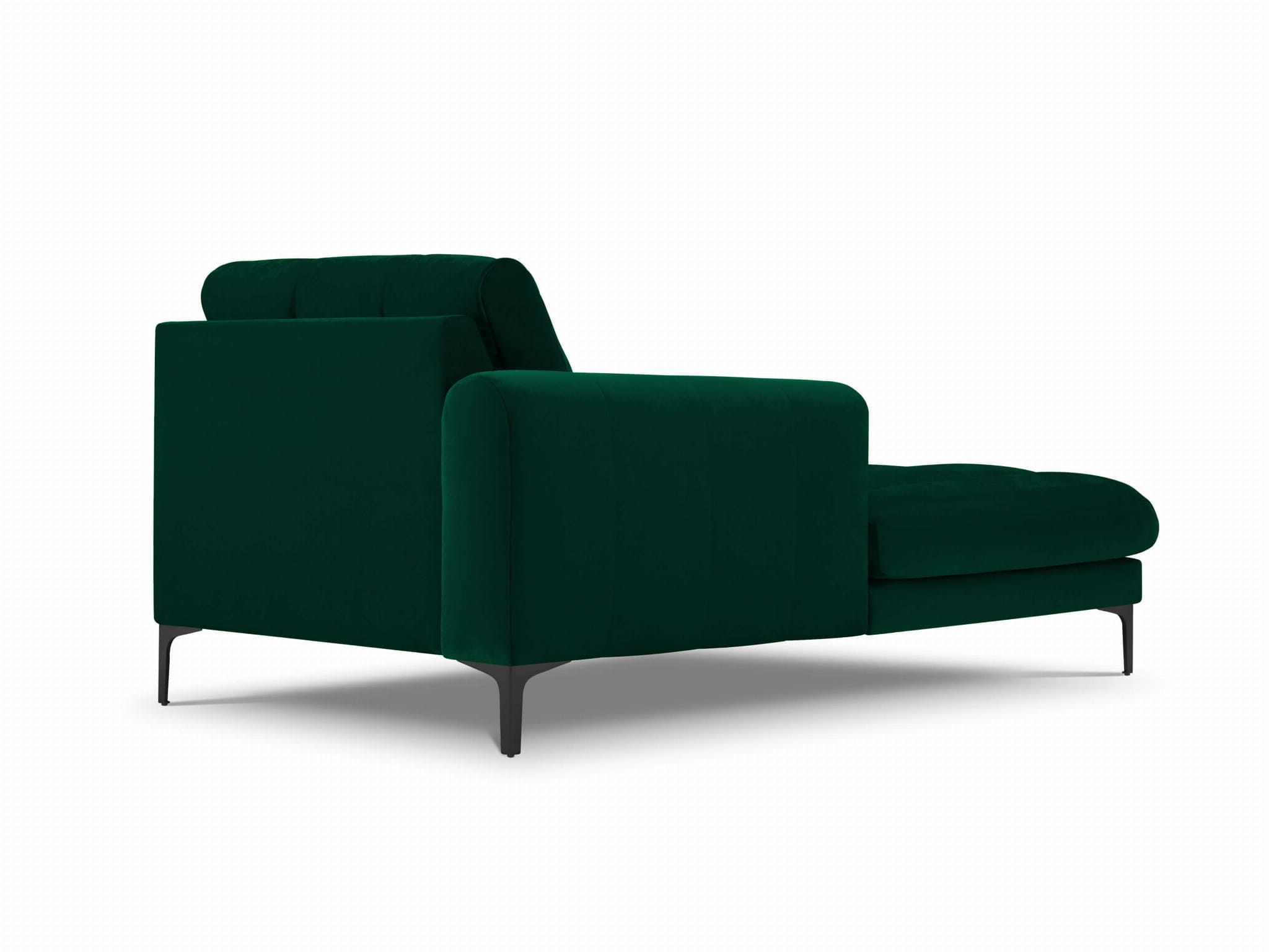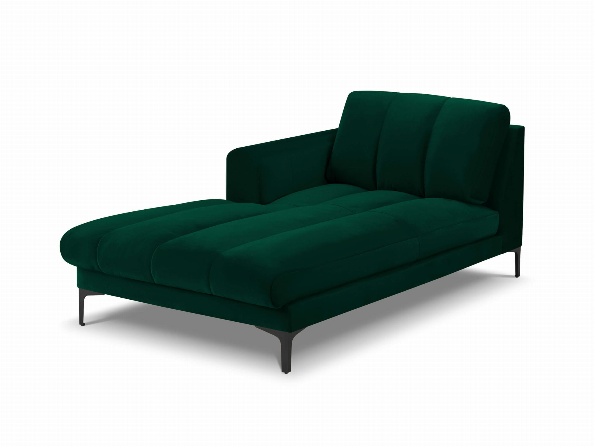 Szezlong Gina do salonu butelkowa zieleń aksamit na czarnych nóżkach