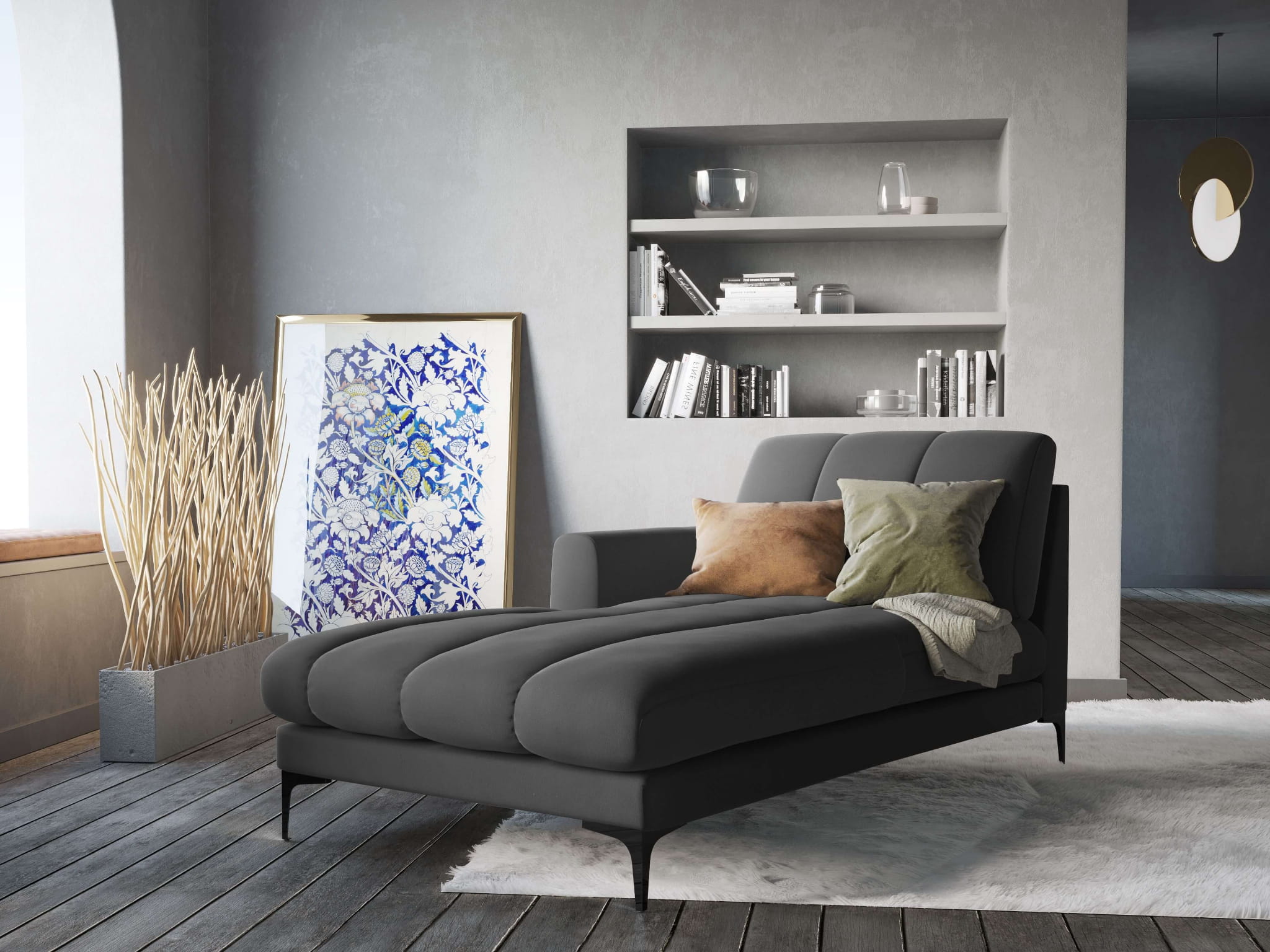 Szezlong Gina do salonu ciemno szary aksamit na czarnych nóżkach