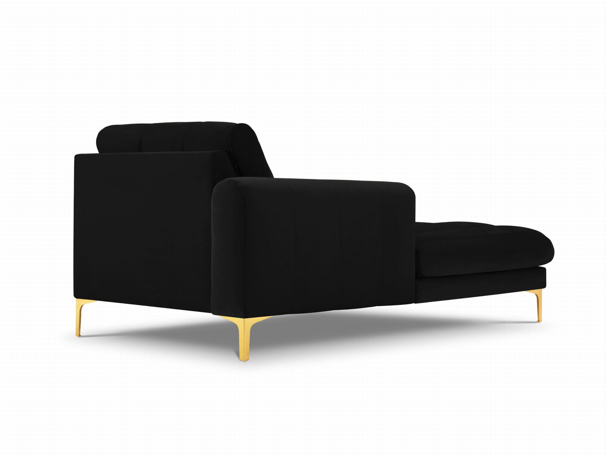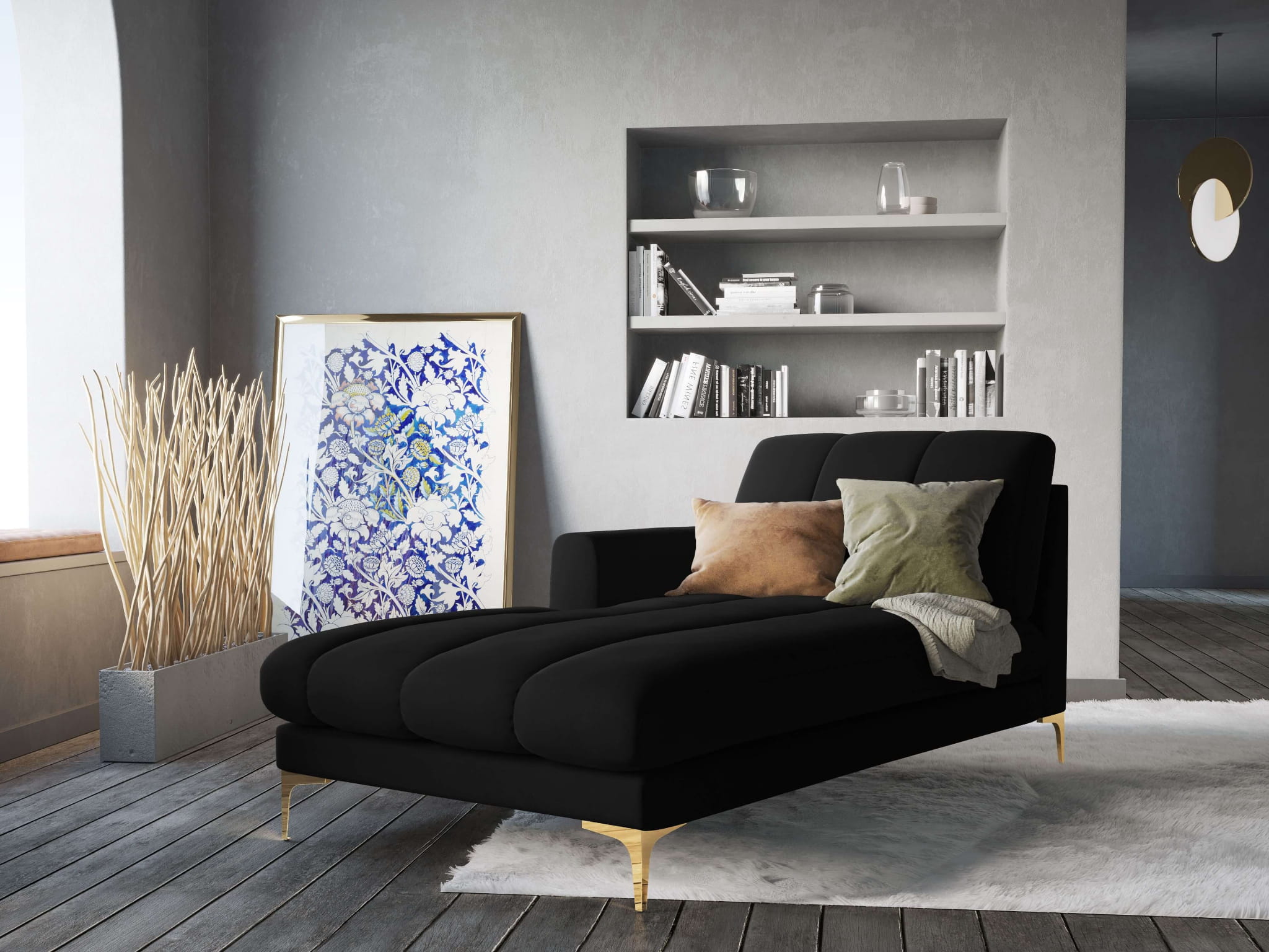 Szezlong Gina do salonu czarny aksamit na złotych nóżkach