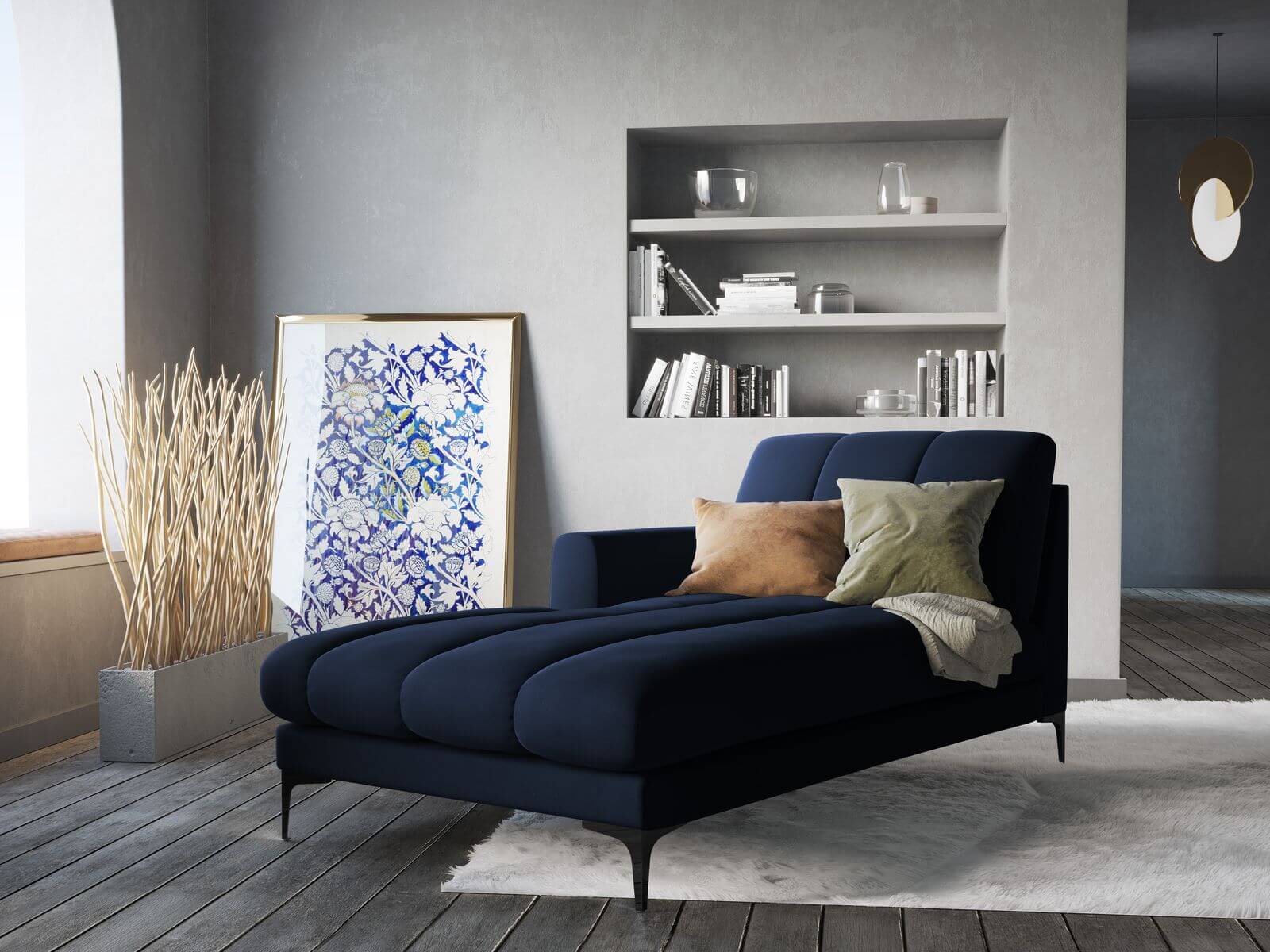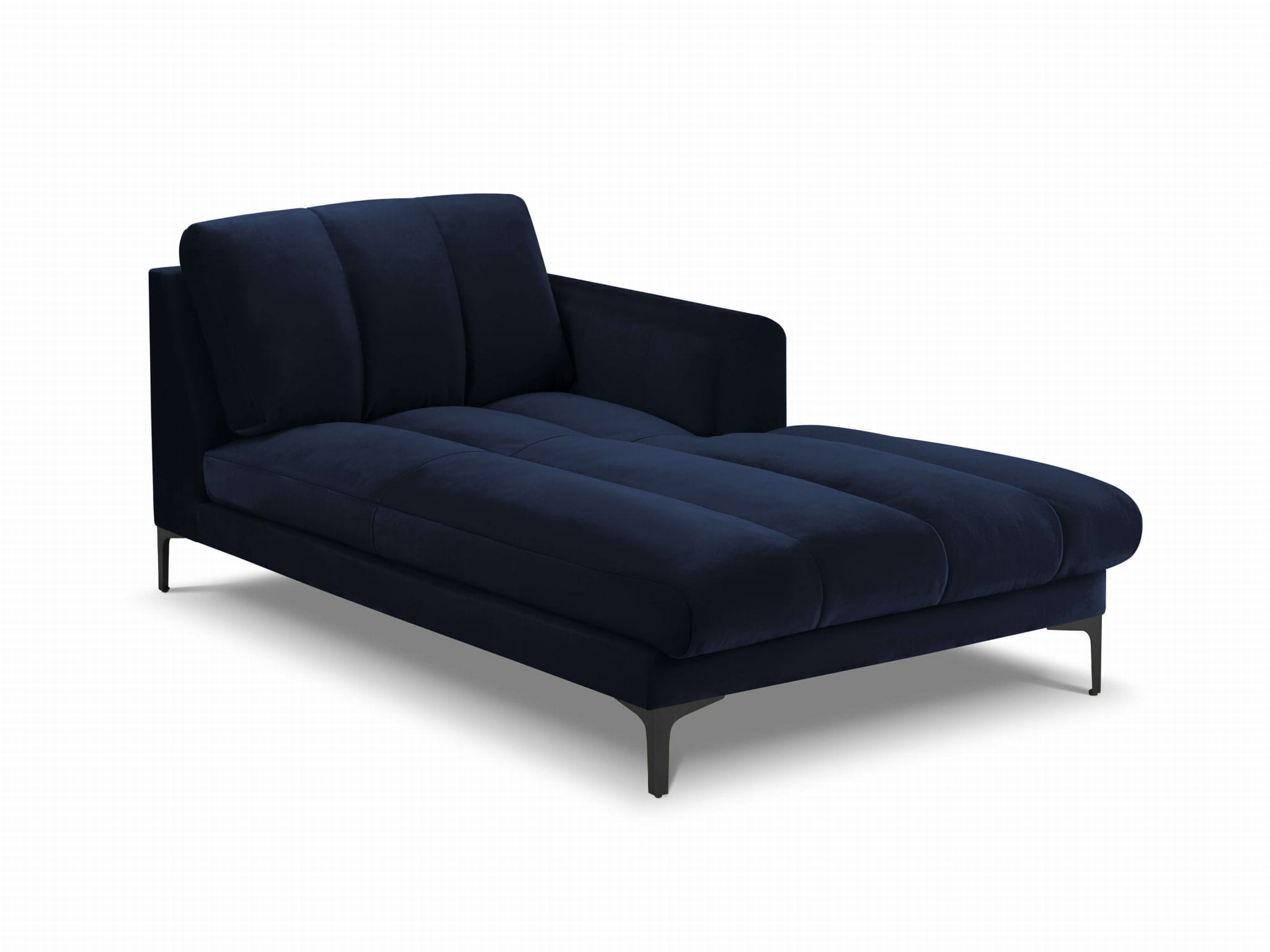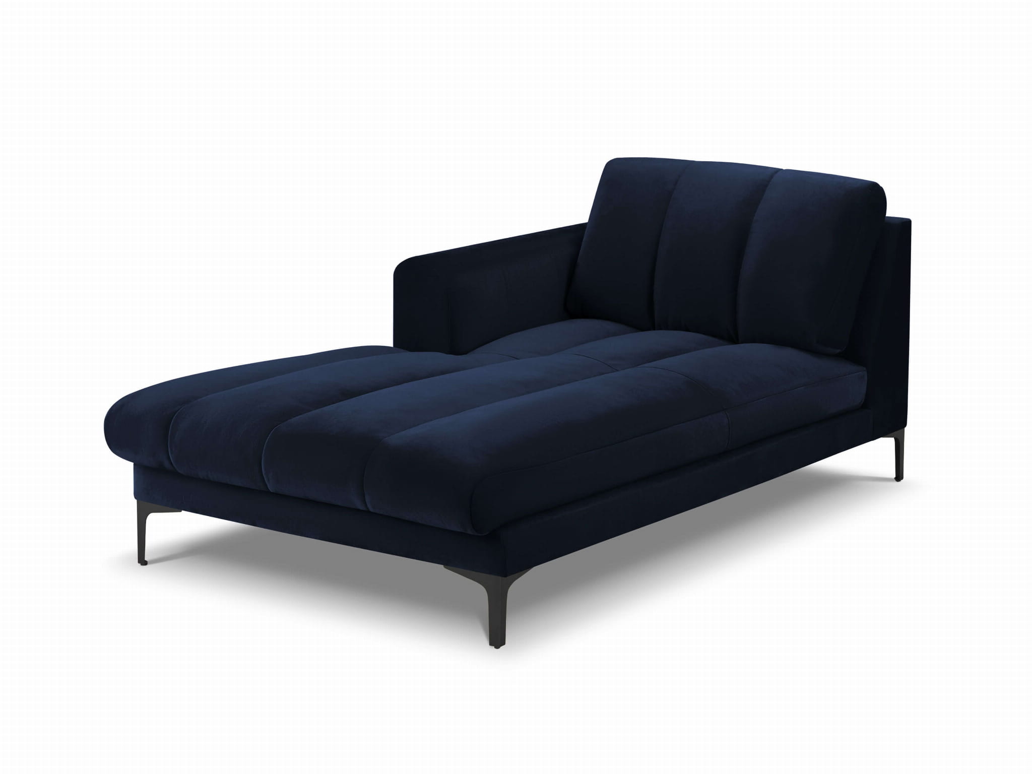 Szezlong Gina do salonu granatowy aksamit na czarnych nóżkach
