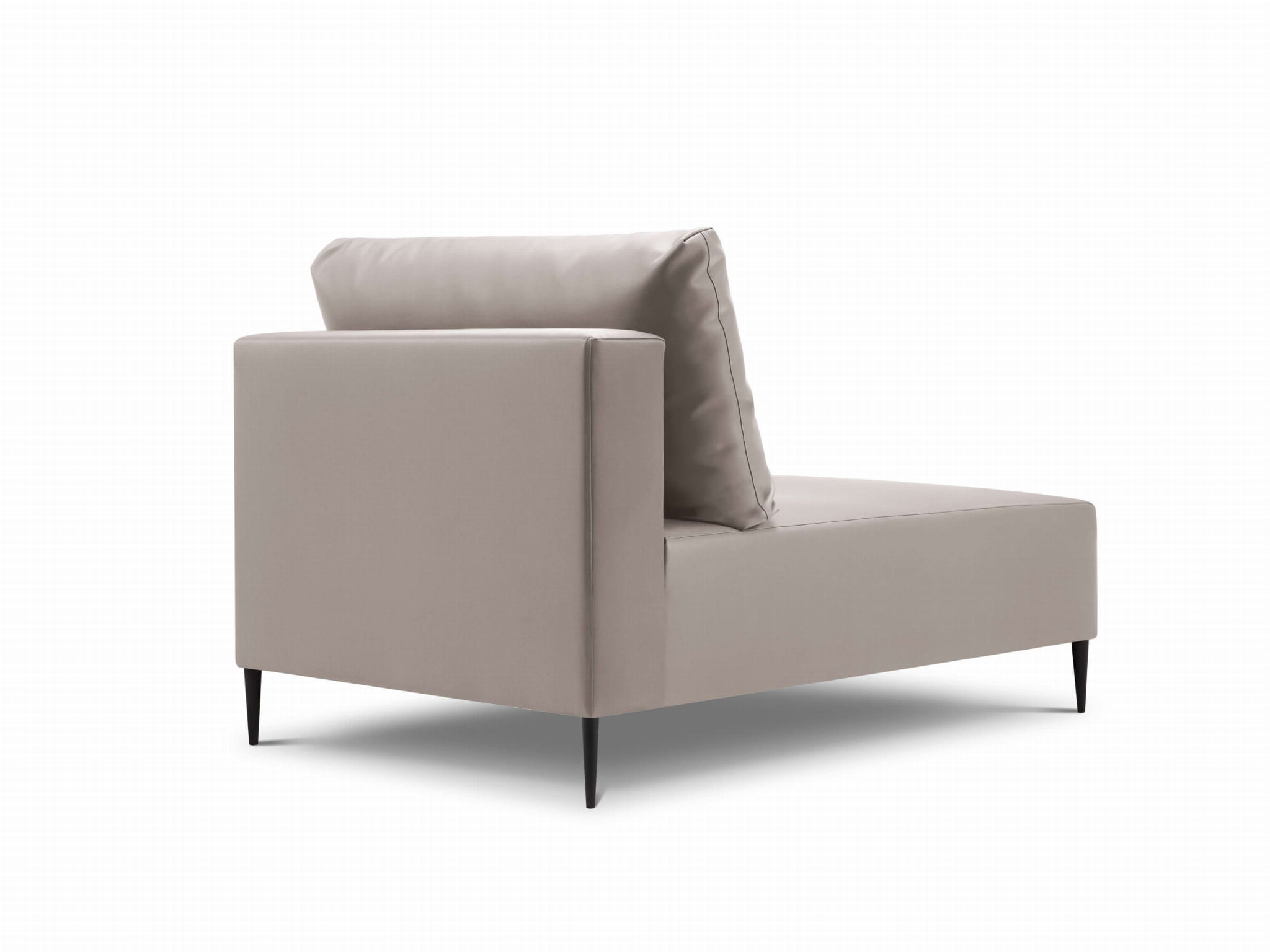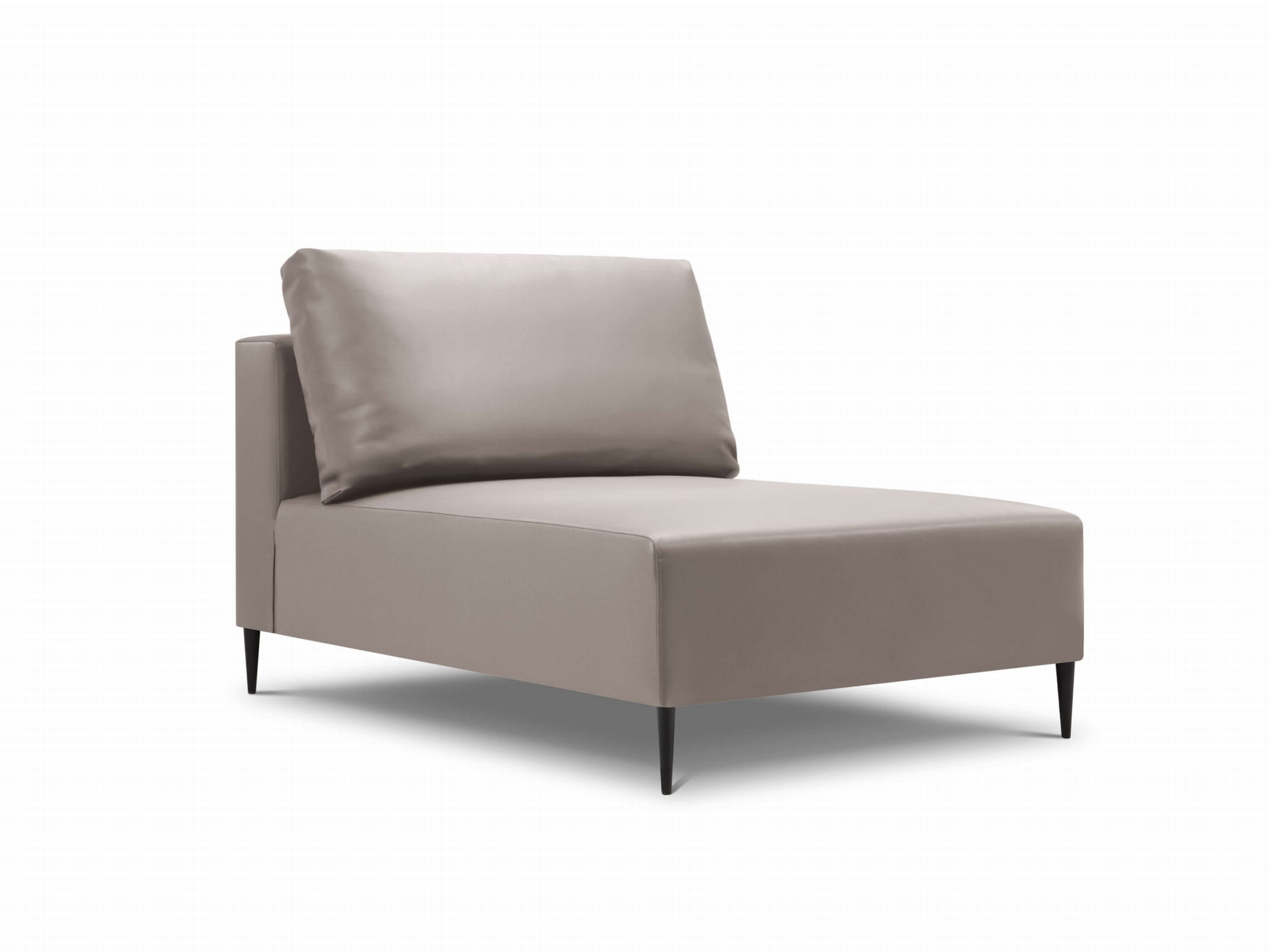 Ustawiony na 15-centymetrowych nóżkach, beżowy szezlong posiada wygodne siedzisko wypełnione pianką poliuretanową o wysokiej sprężystości (35 kg/m³).