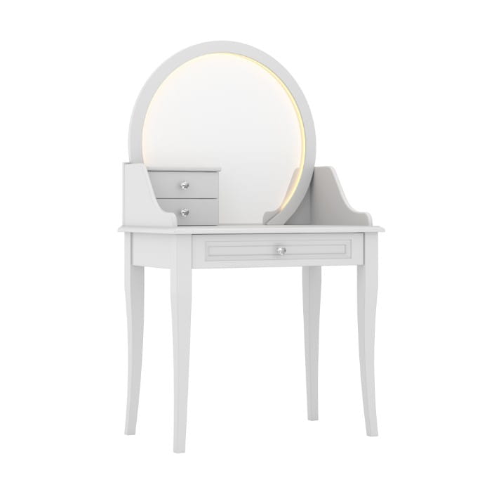 Elegancka toaletka Charlotte z dużym okrągłym lustrem emanuje wyszukanym stylem i jest doskonałym dodatkiem do Twojej sypialni lub pokoju dziecka. Zapewni nie tylko praktyczną powierzchnię użytkową ale również doda wyjątkowego uroku i luksusu do wnętrza.
