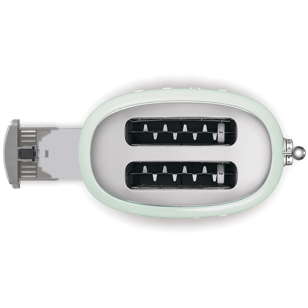 Całość utrzymana w wyjątkowej estetyce w stylu lat 50. Toster Smeg będzie niezawodnie spełniał swoją funkcję w codziennym użytkowaniu, ale także jest wyjątkowym dodatkiem aranżacyjnym do kuchni. Wzornictwo w stylu retro w połączeniu z pastelowym miętowym kolorem, doda w pomieszczeniu wyjątkowego, stylowego akcentu. Toster w kompozycji z innymi produktami linii 50's Style będzie tworzył ciekawą i oryginalną kompozycję. Szczególnie w towarzystwie czajnika lub ekspresu do kawy.