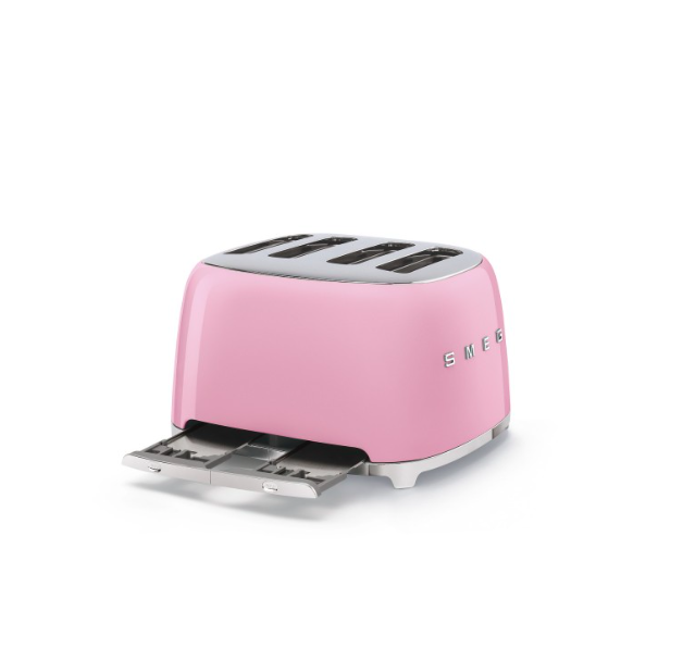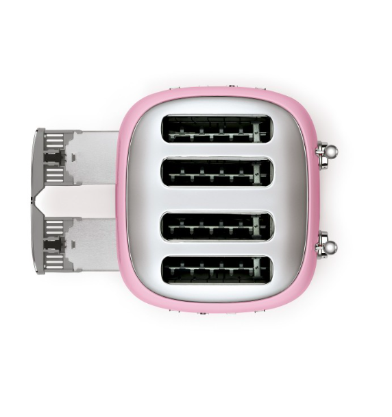 Designerski toster marki Smeg linii 50's Style w różowym kolorze. Cała kolekcja nawiązuje do amerykańskiego stylu z lat 50-tych, czyli połączenie estetyki z ciekawym wzornictwem w stylu retro.