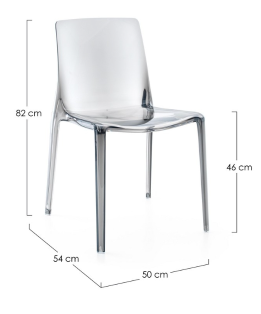Krzesło Adele Smoked zostało zaprojektowane z myślą o funkcjonalności – możliwość sztaplowania pozwala na łatwe przechowywanie i optymalizację przestrzeni. Dymiona, przezroczysta barwa świetnie komponuje się z surowym betonem, naturalnym drewnem oraz metalowymi akcentami, idealnie wpisując się w styl industrialny, loftowy oraz modern glamour. To propozycja dla tych, którzy szukają włoskiego designu, który łączy wizualną lekkość z solidnością wykonania.