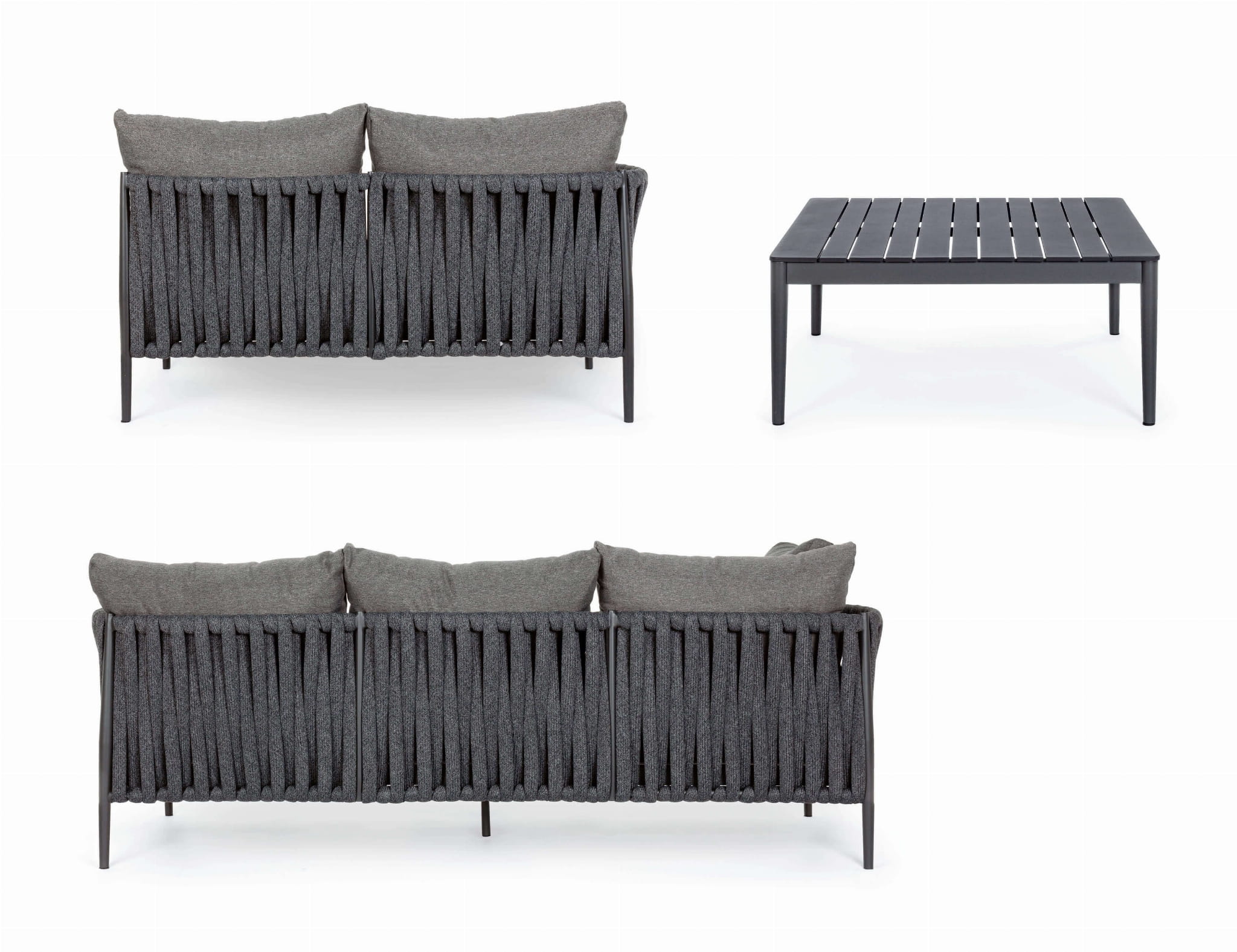 Komplet ogrodowy Rafael składa się ze stolika kawowego oraz dwóch sof, które można łączyć w jeden spójny narożnik.