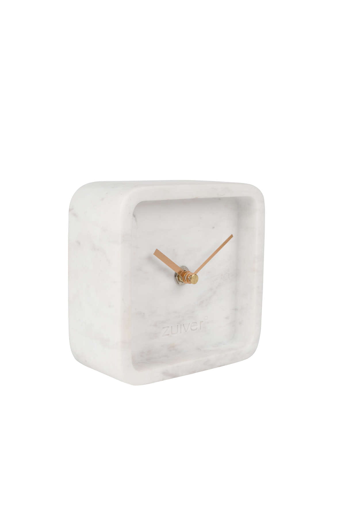 Stylowy, marmurowy zegar marki Zuiver to idealny przykład skandynawskiego stylu. Charakteryzuje się on surowym wykończeniem i oszczędnością w detalach. Tarcza pozbawiona jest podziałek. Złote wskazówki perfekcyjnie współgrają z białym marmurem.