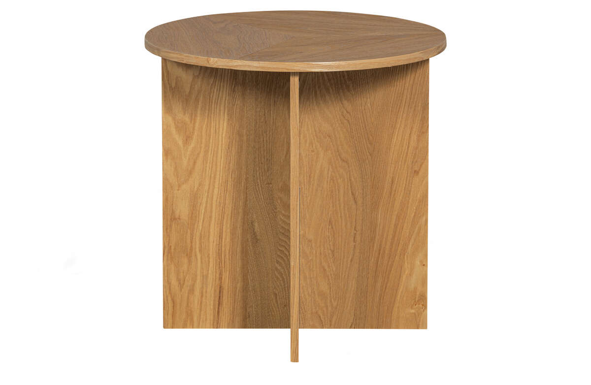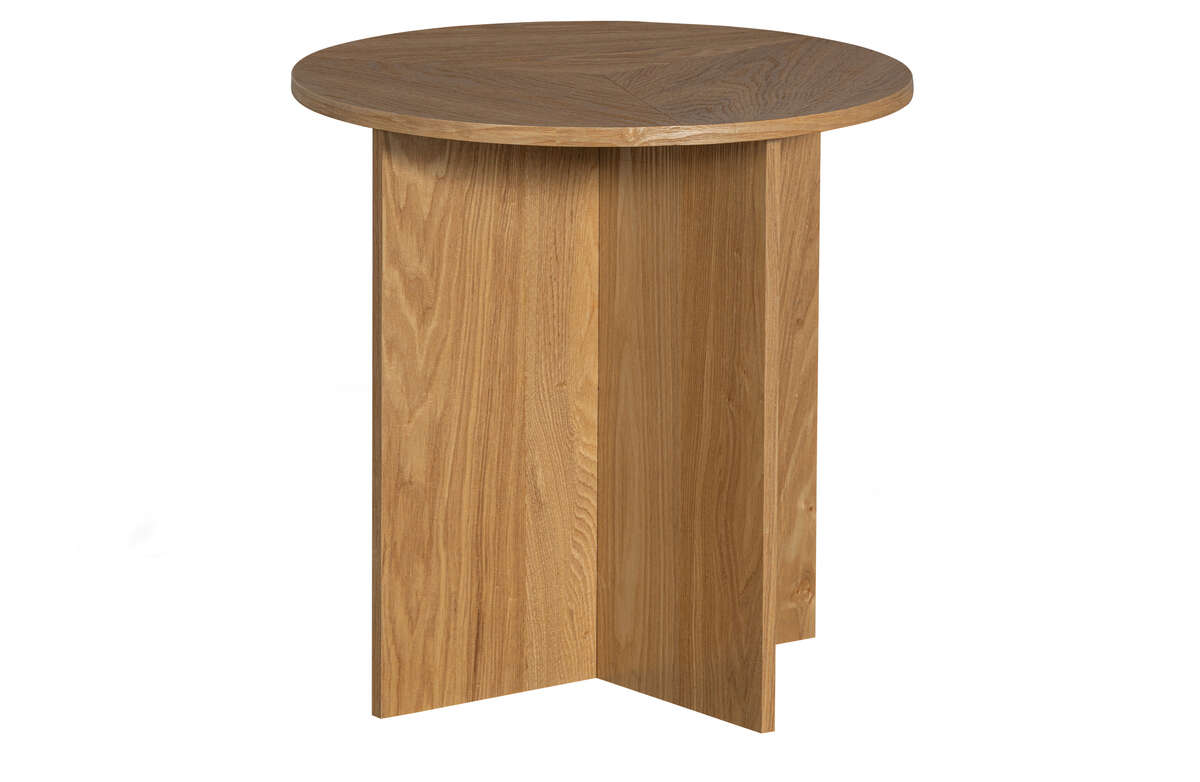 Zestaw stolików Lina to wyraz zabawy formą i designem. Elementem przykuwającym wzrok są masywne podstawy, mające formę dwóch skrzyżowanych ze sobą desek, które nadają całości charakteru i dynamicznego wyglądu. Wykończenie w ciepłym, brązowym odcieniu drewna eukaliptusowego dodaje przytulności i naturalnego uroku.