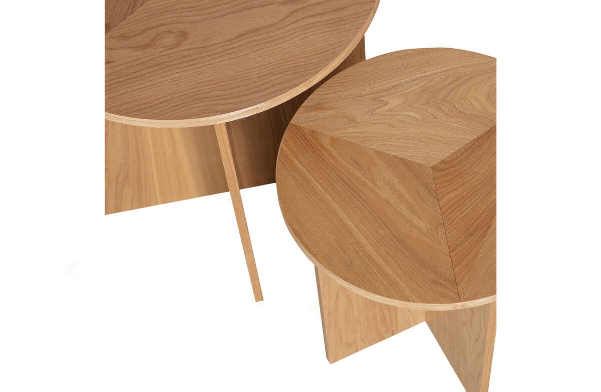Odkryj niezwykłą harmonię designu i funkcjonalności z zestawem dwóch stolików bocznych Lina od renomowanej holenderskiej marki WOOOD. Ten efektowny duet zachwyca nie tylko stylowymi podstawami, ale także wyjątkowymi wykończeniem.