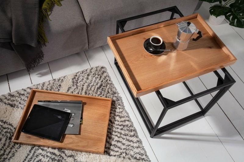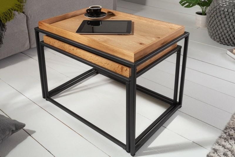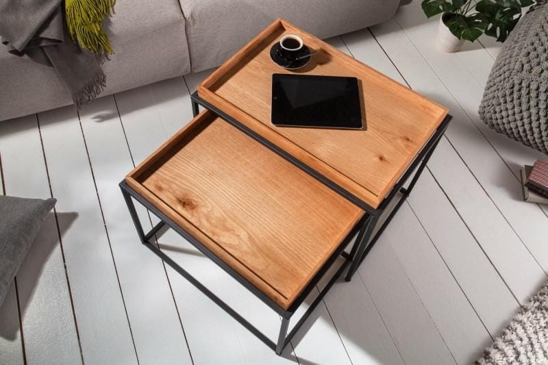 Zestaw 2 stolików kawowych Elements drewno metal