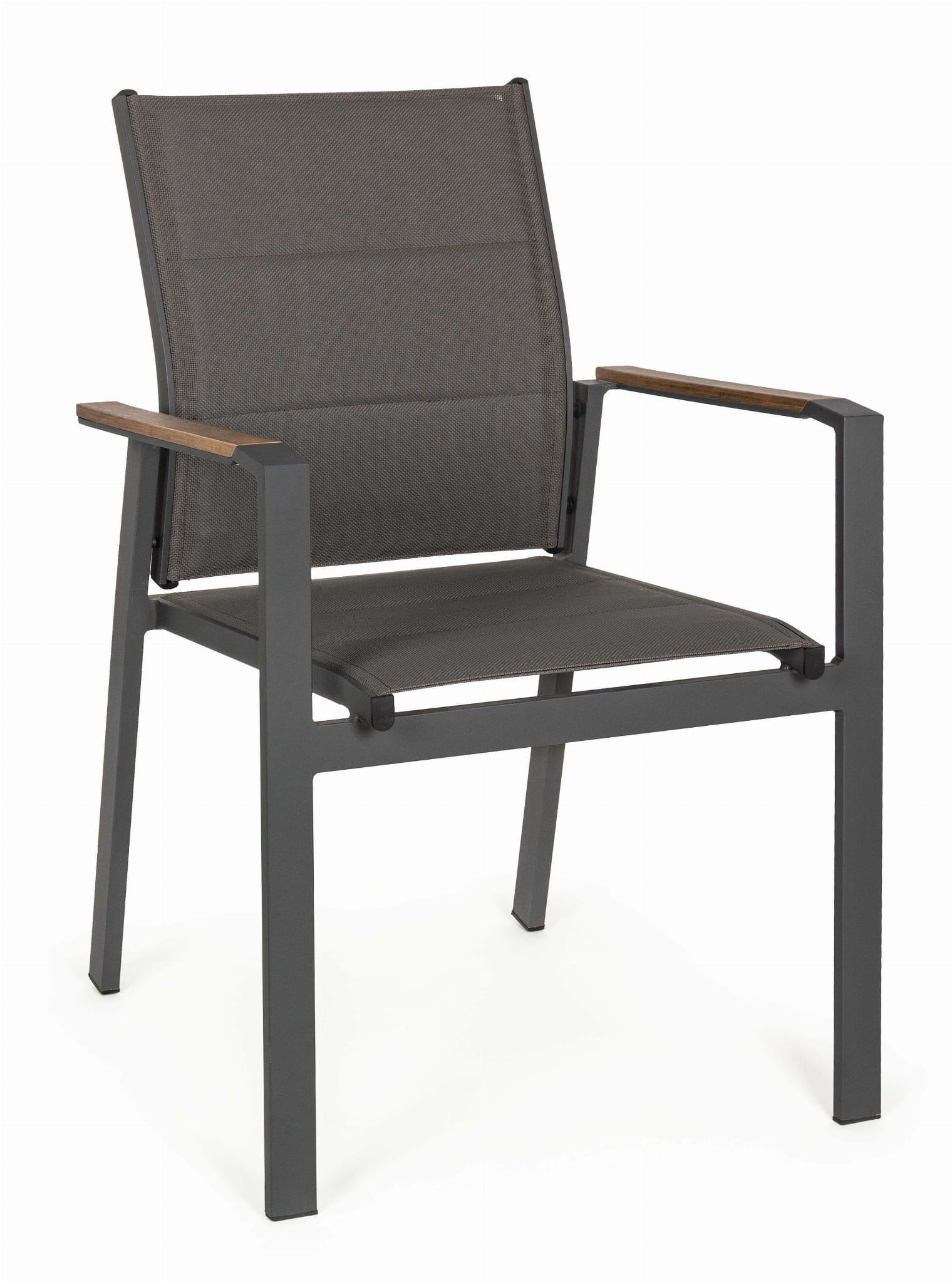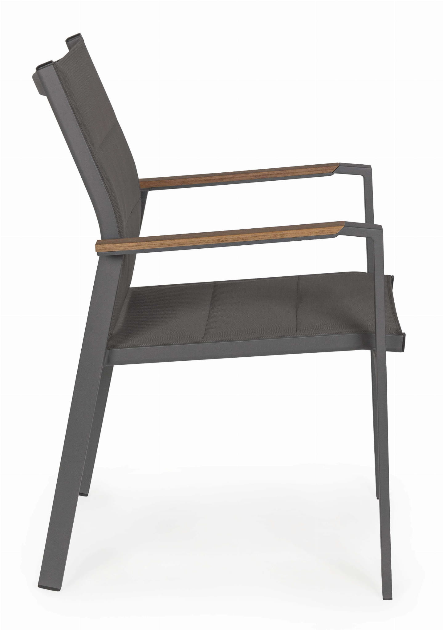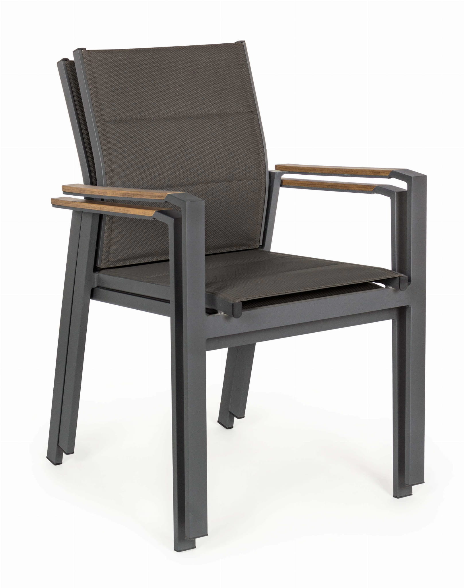 Blat stołu i podłokietniki krzeseł wykonane są z poliwęglanu (kompozytu przypominającego drewno) w kolorze teakowym, co nadaje meblom elegancji i przytulności.