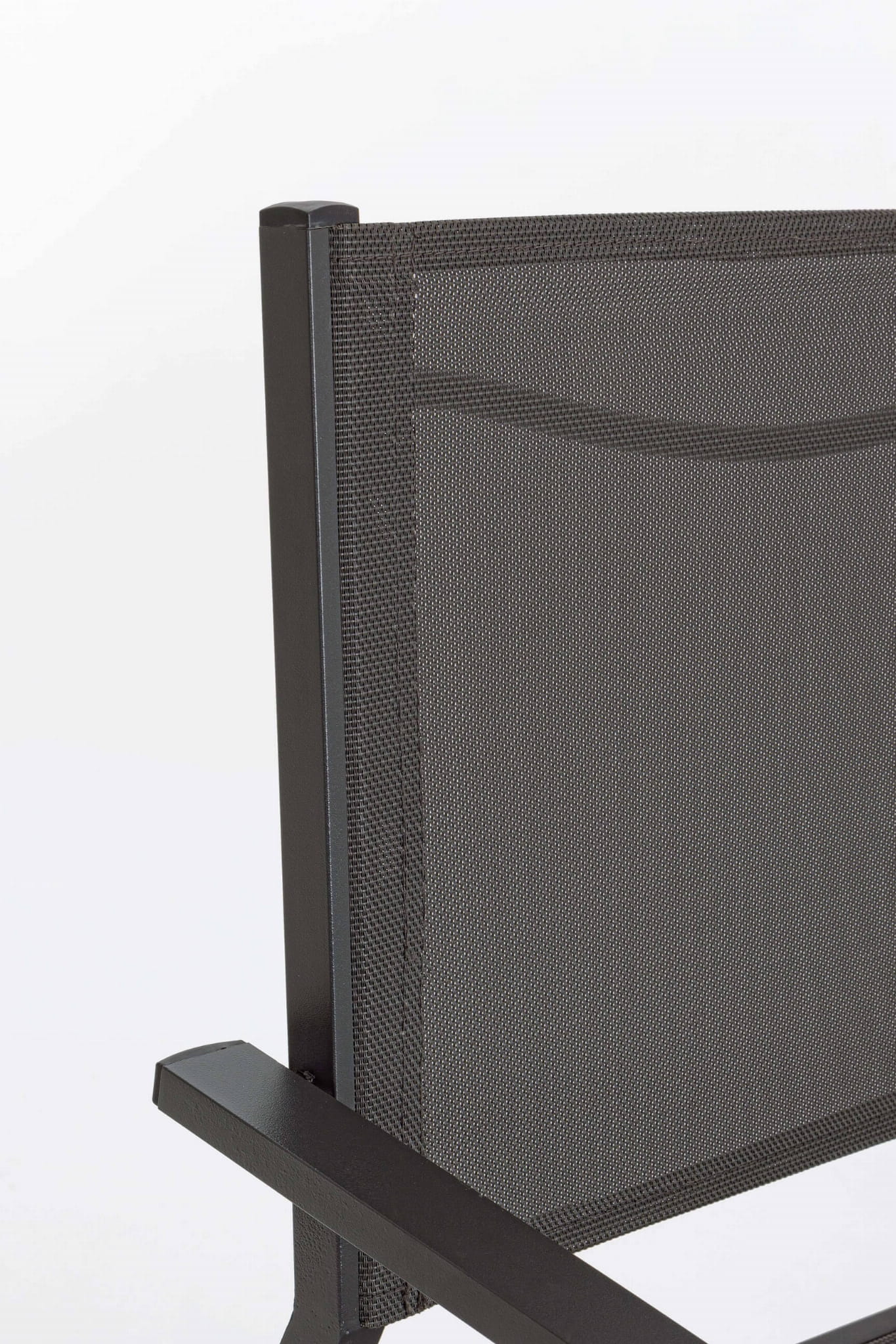 Duży, antracytowy zestaw stołowy Hilde, który doskonale sprawdzi się podczas przyjęć i obiadów na przestronnym tarasie.