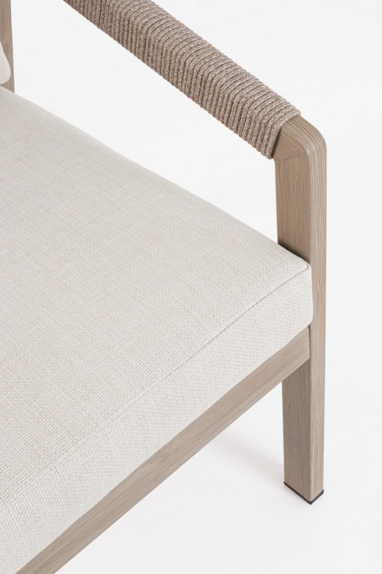 Zestaw wypoczynkowy Kalimera to luksusowa propozycja od włoskiej marki Bizzotto, stworzona dla osób ceniących subtelną kolorystykę i najwyższą jakość wykonania. Główna konstrukcja mebli została stworzona z aluminium malowanego proszkowo w piaskowym odcieniu. To nowoczesne wykończenie łączy wizualne ciepło naturalnych barw z bezkompromisową trwałością metalu, zapewniając pełną odporność na korozję i wpływ zmiennych warunków atmosferycznych.