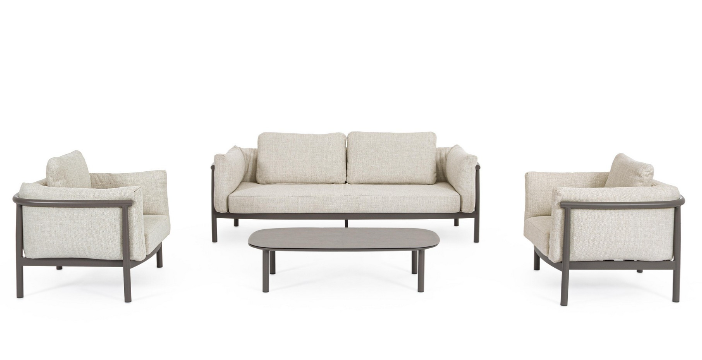 Zestaw wypoczynkowy Theodore Castor, pochodzący z ekskluzywnej linii Bizzotto Homemotion, to propozycja dla najbardziej wymagających miłośników designu. Konstrukcja mebli opiera się na aluminium malowanym proszkowo w eleganckim, ciemnym odcieniu (Castor), które zestawiono z detalami z naturalnego drewna tekowego umieszczonymi na froncie i nogach. To połączenie surowości metalu z ciepłem drewna nadaje kolekcji unikalnego, prestiżowego charakteru.