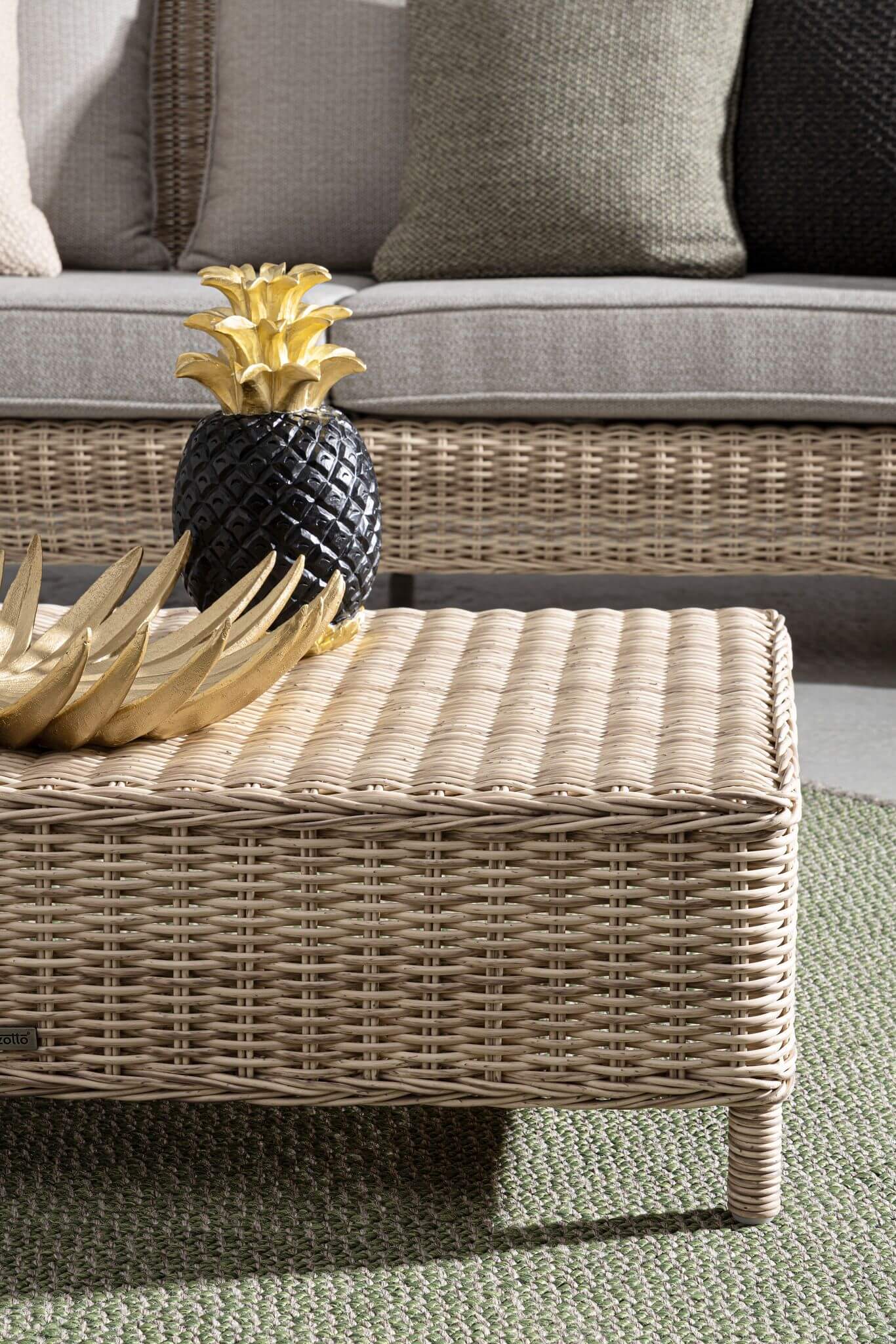 Wyjątkowy zestaw wypoczynkowy do ogrodu w stylu Hampton wykonany z technorattanu - idealne meble do odpoczynku podczas ciepłych letnich dni. Projektu włoskiej marki Bizzotto.