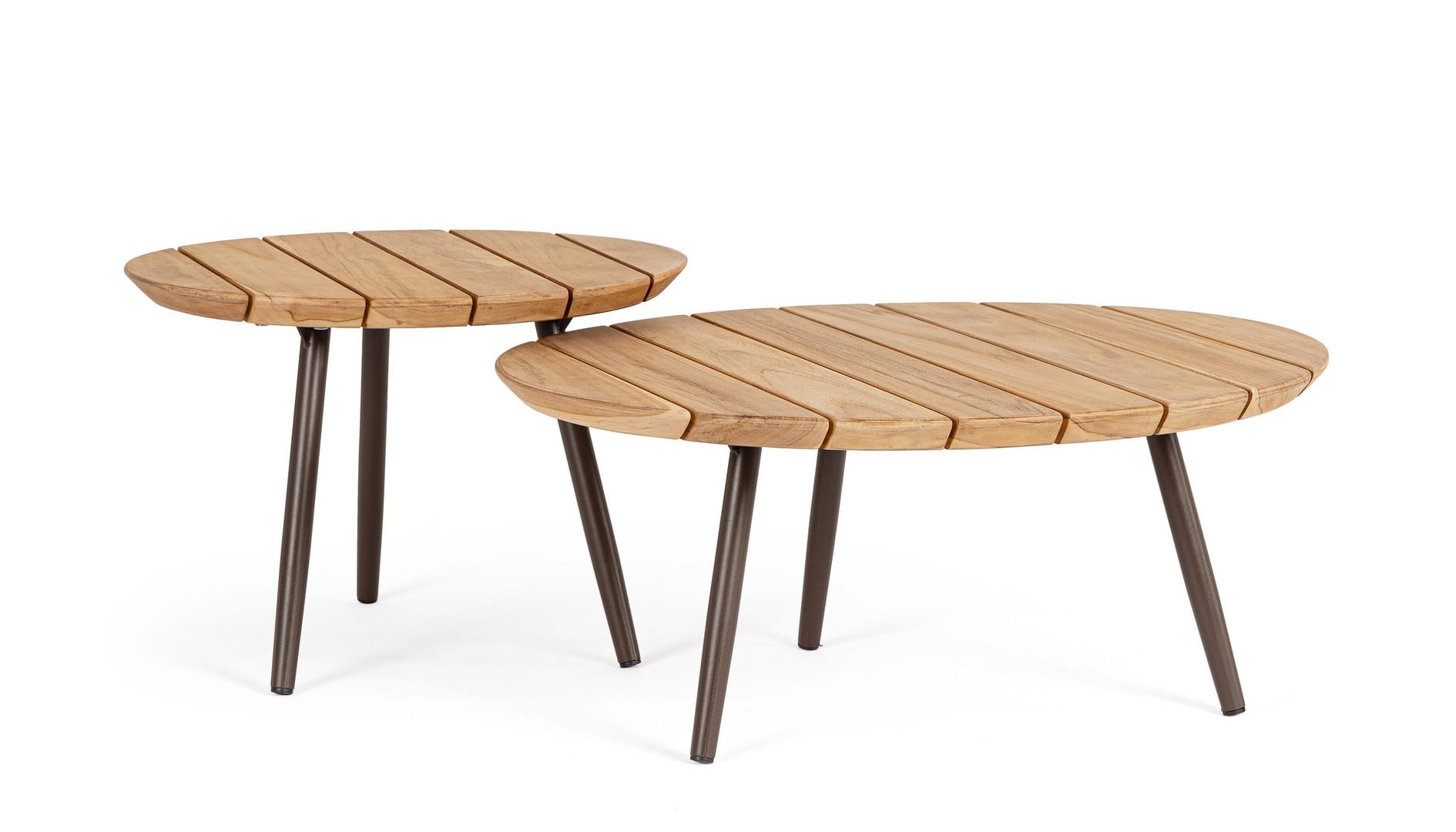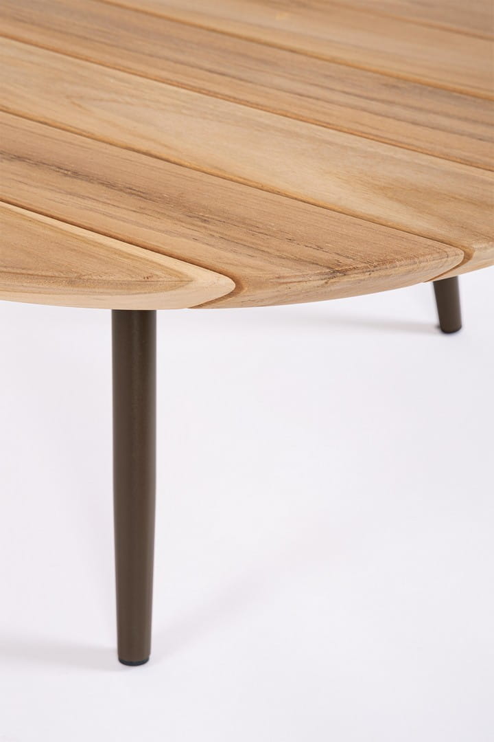 Ten elegancki zestaw dwóch stolików kawowych to idealne dopełnienie przestrzeni wypoczynkowej na tarasie lub w ogrodzie. Blaty wykonane zostały z najwyższej jakości drewna tekowego z certyfikatem SVLK (pochodzącego ze zrównoważonych upraw leśnych), które słynie ze swojej trwałości i odporności na warunki atmosferyczne.