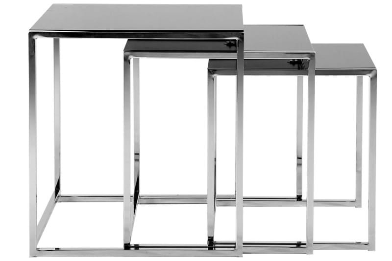 Stoliki Cross to zestaw 3 stolików różnej wielkości wykonanych z metalu oraz szklanych blatów w kolorze czarnym. Świetnie sprawdzą się w przestrzeniach komercyjnych, biurowych, hotelowych oraz domowych. Stoliki można wsunąć jeden w drugi oszczędzając miejsce lub rozstawić oddzielnie w razie potrzeby.