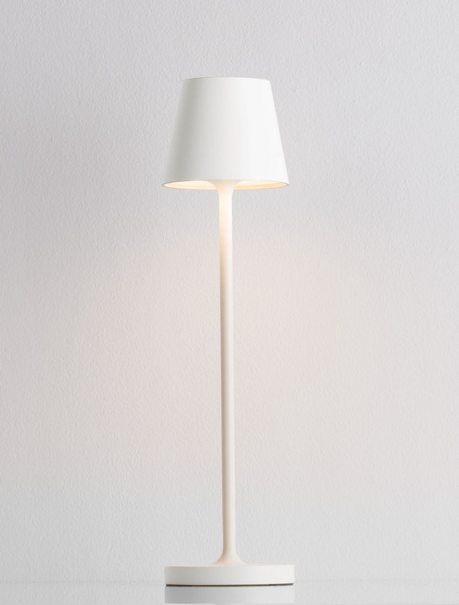 Lampa Tercero to elegancka, minimalistyczna lampa stołowa, która dzięki swojemu nowoczesnemu designowi doskonale sprawdzi się zarówno w przestrzeniach wewnętrznych, jak i na zewnątrz. Wykonana z aluminium, wyróżnia się trwałością oraz odpornością na zmienne warunki atmosferyczne, co czyni ją idealnym wyborem do tarasów, ogrodów czy balkonów. Jej prosta, smukła forma nadaje subtelnego, ale nowoczesnego charakteru każdej aranżacji.