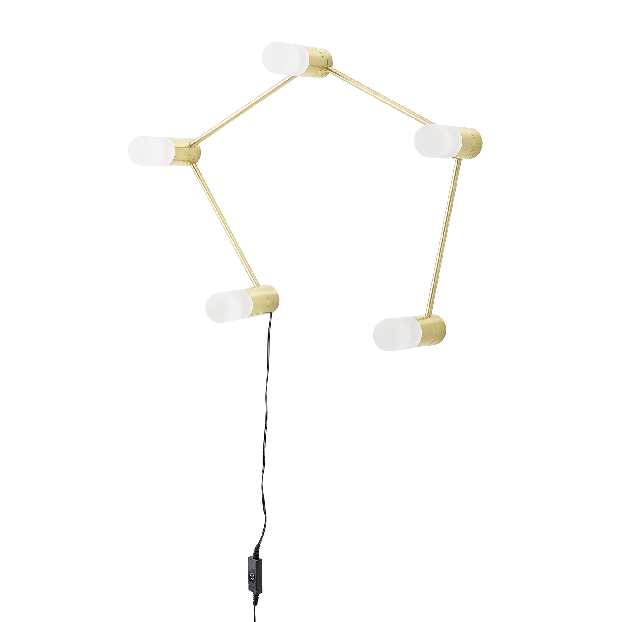 Elegancka lampa stołowa duńskiej marki Bloomingville. Swoją wyjątkowość zawdzięcza nie tylko skandynawskiemu designowi, ale przede wszystkim funkcji zginania, która umożliwia dowolne ustawienie lampy na stole. Podstawę lampy stanowi złote, metalowe ramię, do którego przymocowane są subtelne szklane klosze. Całość przypomina uroczy świecznik.