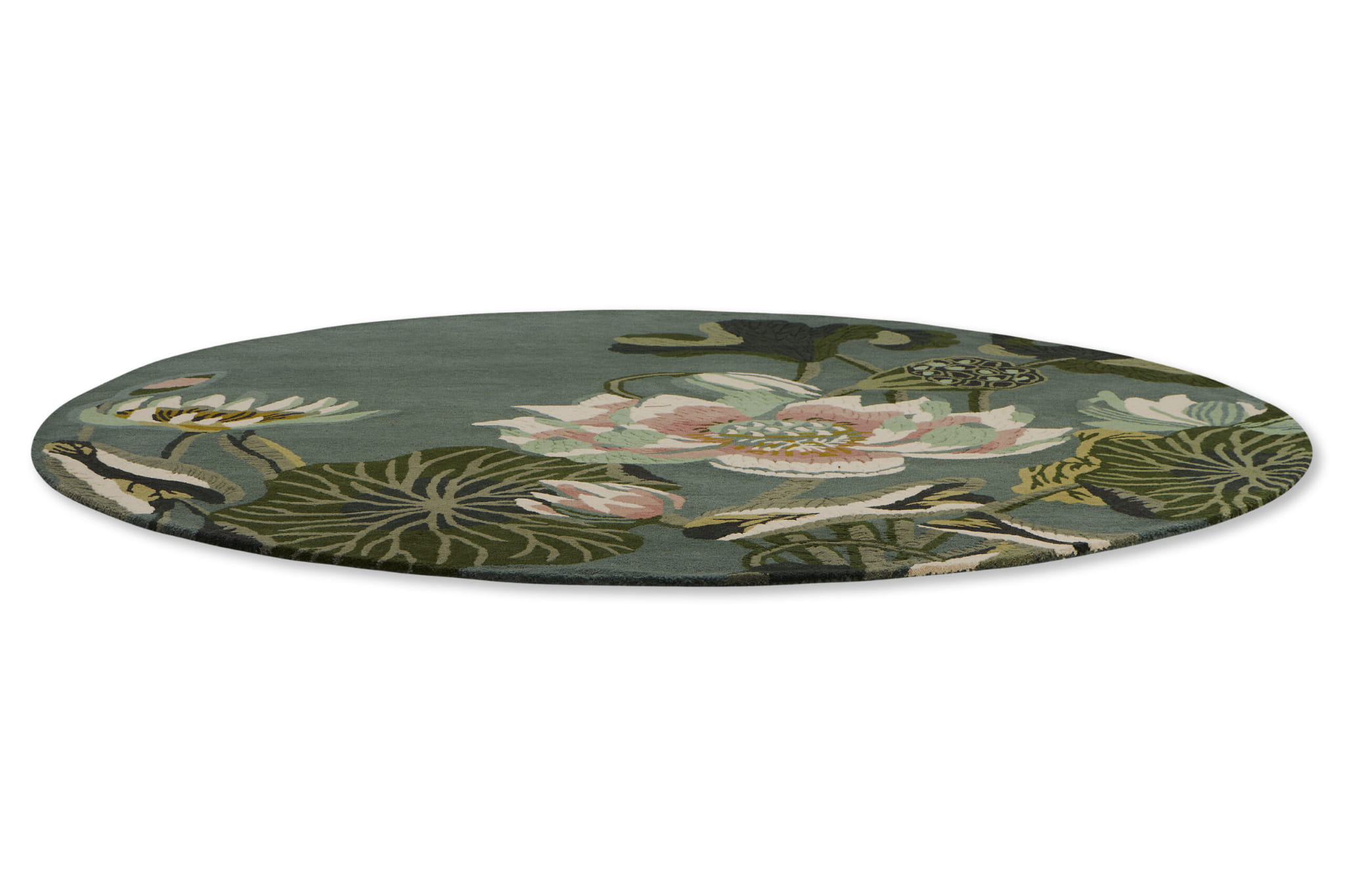 Zielono szary okrągły dywan w kwiaty WATERLILY ROUND MIDNIGHT POND 0386080