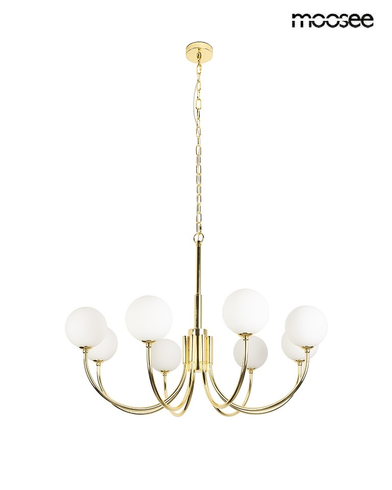 Złota lampa wisząca z mlecznymi kloszami MOOSEE GRACIA