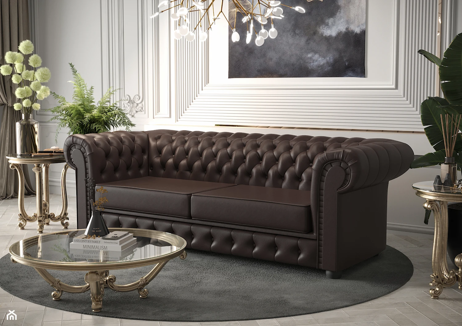 W klasycznym stylu glamour złoty stolik kawowy wyróżnia się wyszukanymi detalami, takimi jak marmurowy blat, finezyjnie rzeźbione nóżki czy zdobienia w stylu vintage. Takie elementy nie tylko przyciągają wzrok, ale również podkreślają bogaty charakter wnętrza. Marmurowy blat w odcieniach bieli, czerni lub butelkowej zieleni w połączeniu ze złotą podstawą tworzy luksusowy i ponadczasowy efekt.